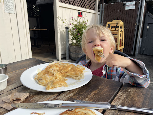 Read moreThis place is loud. Not just from the customers but the servers are loud. They took over one of the tables to prep roll ups and they were joking/talking, which is fine. However they were so loud it was hard to have a conversation at the table. They would also yell to each other from around the restaurant. Again, servers need to talk, that is fine. But yelling to the point multiple customers turn to look at why it’s so loud is not. The server tried not once but three different times to clear our plates while we were still obviously eating. There were other open tables so it wasn’t like there was a rush or the like. The table and chairs were dirty, one chair had bacon chunks and grease on it. The jam bowl had bits of someone else’s (hopefully) toast in it. The green sauce’s lid was crusty and caked with dried sauce.