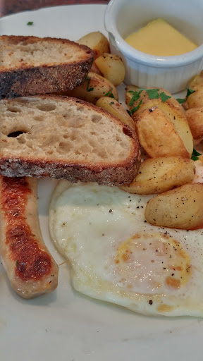It took much longer than I expected for my breakfast to arrive, especially given the thin crowd. I immediately noticed a thin layer of oil beneath the eggs ugh. Next, all of the food was lukewarm. The delay must have been due to my meal sitting on the ready shelf waiting to be delivered. The potatoes lacked seasoning and were cumbly. The bacon overcooked. All short of even mediocre.