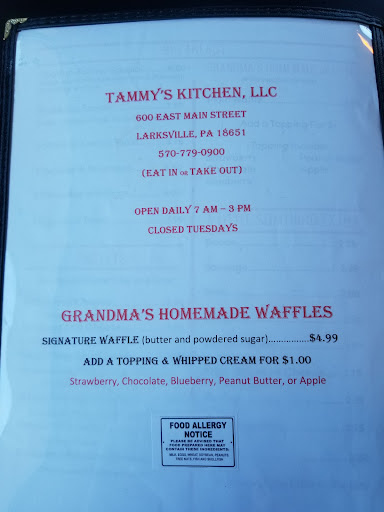 What a fantastic experience! Never one to pass up a chance to visit a new, ânon-chainâ dining establishment, I hadnât had a chance to give Tammiâs Kitchen a chance until a few days ago. I always enjoy local diners/restaurants because you get the chance to see what the owners have done that really sets them apart from the typically predictable, bland experience that chain places offer. Boy does Tammiâs Kitchen deliver! You are first welcomed by the uniquely homey Norman Rockwell themed interior design. It just warmly invites you sit down, relax, while leaving the hustle & bustle of the outside world at the door. Scores an âAâ for design. I visited Tammiâs for breakfast and ordered my favorite âŚ. which also helps to filter out the âfood prosâ from the food amateurs - S.O.S. and home fries and a side of sausage. I love S.O.S. for its filling, comfort-foody taste, but itâs easy to not make well. Not only did Tammiâs do well, but theyâre the only place in the NEPA Iâve visited that actually uses real chipped beef in their recipe! Donât get me wrong, ground beef (or beef/sausage mix) in SOS works, but nuthinâ beats the original Creamed Chipped Beef. WOW was it good on my rye toast! And you can taste the homemade care put into the âCreamedâ part as opposed to othersâ generic #10 can style creamed gravy. Big points for real chipped beef! Homefries are another Go/No-Go for breakfast restaurants â Often browned on the outside and undercooked within. Tammiâs homefries has a perfectly lightly browned outside with a soft potato center (I got fried onions as well). Sausage was yummy â not hastily cooked, flash-frozen pucks you can get around the area. Coffee, smiles, and just enough friendly chit-chat round out the experience. I have a similar favorite breakfast spot up my way in Scranton (but they donât use real chipped beef!)âŚ.But for those in the Larksville/Kingston/Plymouth neck of the woods â Ya gotta make this a...