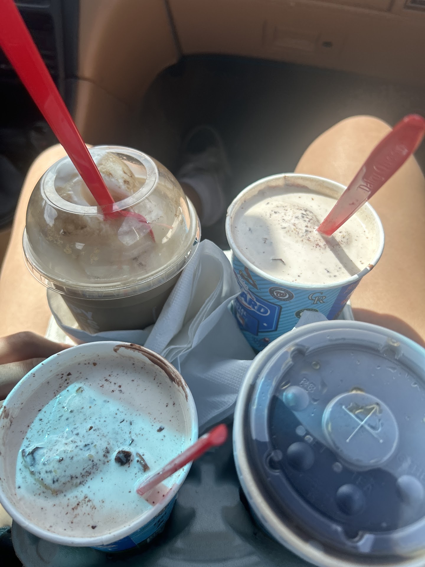 Read moreI went to this location twice because I wanted to give it a fair chance. First of all itâs ridiculous that itâs not clearly indicated on the sign that there are no food options here. On our first visit it took us 15 minutes to get a small cherry dipped cone. Ten minutes in the front desk girl told us âsorry, the ice cream is coming out of the machine like waterâ. Not her fault, but not appetizing to hear. On our second visit, we went through the drive through and after we said our order, there was no response. We drove to the window and the guy said âsorry my headset messed upâ. This is a new location, why is your staff already dealing with these issues? We then pulled forward and waited probably ten minutes for two dipped cones, then the girl passed us one cone that was half dipped and the other was melting all over the place. If ice cream is all you are doing, why is it still so bad? I will drive to the other location...