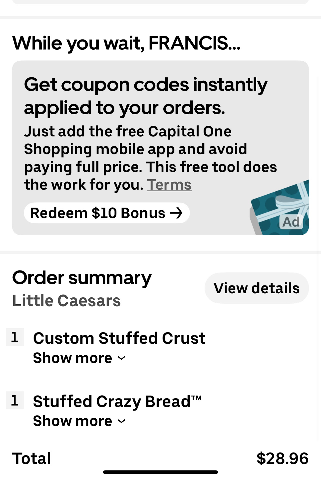 Read moreWish I would have read the reviews before hand. Ordered a simple hot and ready, got the window and the girl wanted to charge me for the extra cheese one. She said it would be a few minutes if I could drive around the plaza and come back to the window. Weird request but I said ok maybe they just need those few min to make it. Went around and saw the guy the was behind me earlier get his order, it was a good 4 pizzas. I thought to my self it should not be long now. I pulled up again they said it was not ready if I could circle again. I was asking to stay again, when then rude girl slamed the window on me. Not even a minute later some guy came out said its gonna be 8 min its still in the oven I asked him if I can just go inside to wait if it would be that long. He was fine with it so I parked got down. He handed the pizza to me the pizza when I got in. No joke the moment I parked and walked in lol. Turns out it was not even the one they said was in the oven it was warm at best lol. Place need to get there store in order and should not ask the costermer to jump hoops to get there food also should not lie about what they have just to get the extra cash. Sad vist won't be...