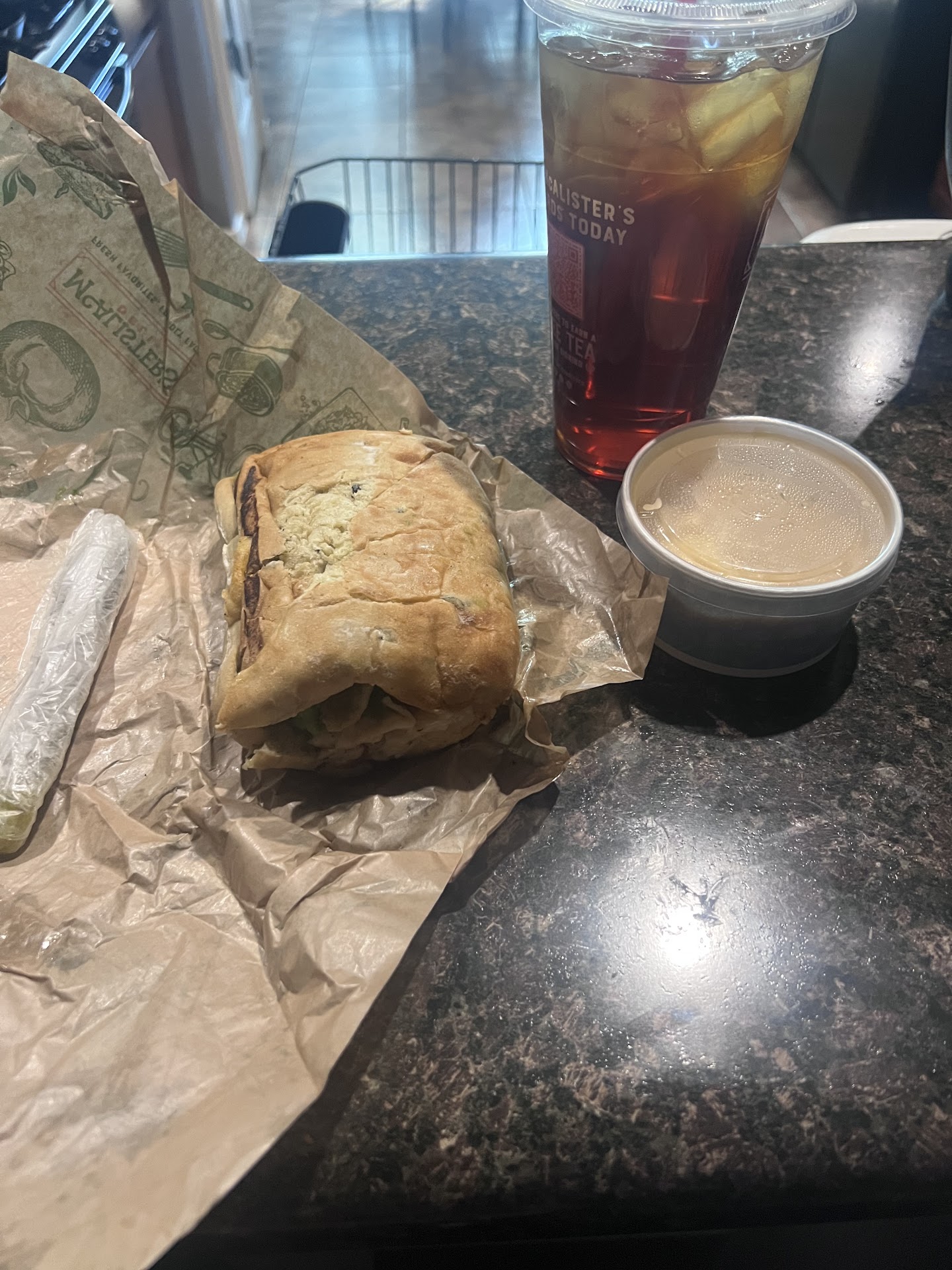 Read moreMister mumbles, the cashier greeted my sister and I as we approached the counter to make our order... I tried to order the lasagna soup but was quickly informed that they do not have that.... even though there was a big picture of it on the large menu behind him. I pointed out the advertisement behind him, and he then clarified that they were out of that soup because they had order issues. I then ordered a choose 2 chicken tortilla soup and a lightly toasted grilled cheese sandwich and water to drink. My water had the hint of hose water that I used to drink from the hose that stretched across my childhood lawn on a hot summer day. The so-called tortilla soup did not have any tortilla in it but did come with a consolation prize of crispy corn chips on the side. My lightly toasted grilled cheese sandwich was actually a toasted turkey, tomato, and cheese sandwich... not exactly what I wanted but tasted good nonetheless... I completely understand the struggles of finding competent and reliable workers, but the combination of incompetence and high prices combined wins Mc Alisters my...