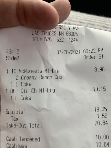 I accidentally ordered $6 worth of food on the app. I couldn't go get it because I was at work and ordered it by mistake. Haley on the phone assured me that the next day I could bring my phone and get my order replaced. Great. I worked 16 hours the next day. My partner came and went to pick it up for me, which I called beforehand and informed them so. His card is the one on the app used to purchase the food but I forgot to send him with my phone. Understandable, but he came back furious because a female manager was rude to him. She wouldn't compare the card even though she knew he was the right person. She wouldn't budge. Over $6. I get it, fine. He comes back, on foot, and is upset. I call and Haley is immediately defensive stating he didnt bring the phone and repeating herself over and over in a very infantile manner. I was attempting to address the rudeness but she spoke over me a grotesque amount, refusing to let me ask why my partner thought she was abusive. Simply would NOT let me ask. Worst manners on the phone and when I gave up and asked her why she was interrupting a customer stated "the customer isn't always right" on a recorded line. Then I REALLY gave up because I could tell it was personal at this point, I asked Haley multiple times for the information to contact the corporate offices, to which she refused, multiple times.. Had two abusive phone calls over a $6 app order. She doubled down on needing a screenshot. I asked if I could send it to anyone there in the store to just get my refund and then- get this- she couldn't help me without the card... His card... That she refused to look at when he tried to show it to her multiple times! Have never seen a worse case of a "McManager" in Las Cruces. Refused to let me speak to another manager. I was calling from work, where I am a hospitality specialist, and have been for a decade. I give free $100 rooms for small mistakes because it is the right thing to do. I do not think expecting a manager to be cordial and helpful is a stretch, and I do not believe Haley was either. Haley didn't know her own store number when asked, had to ask someone, but wouldn't let me speak to the person who KNEW anything. Flat out refused to provide me with the information. Completely petty and childish behavior over $6. Not even worth the refund to not have to be abused by that young woman again. I will be saving a copy of this review to send in at attachment in my email to the corporate office/GM, as well as a screenshot of the $6 order that this started with. My place of business is immediately door to yours, and I will now be forced to tell my guests about this ridiculousness when they ask me for dinner recommendations, as I am uncomfortable sending them there...