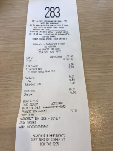 Read moreThis McDonald's location is trash! The parking lot is way too crowded even though there's a lot of spots to park because of the drive-thru it's a madhouse. And on top of that the food that I got which was a double quarter pounder with cheese add lettuce and tomatoes or the large fry and large drink was terrible. My fries were cold my burger didn't have no tomato on it and it was put together terribly made a mess everywhere. The only thing that was right was the drink and I believe the only reason why that was correct was because all I ordered with my meal is a large Coke and well can't exactly mess up a large Coke but then again I may be wrong. I strongly recommend if you're wanting to eat McDonald's go to the McDonald's on either lowman boulevard or the one on University because those two McDonald's are the best ones in cruises especially the one on University. As for this location that we're discussing right now, I wouldn't go back there and eat if it was the last McDonald's on Earth I would just do without McDonald's from now on for the...