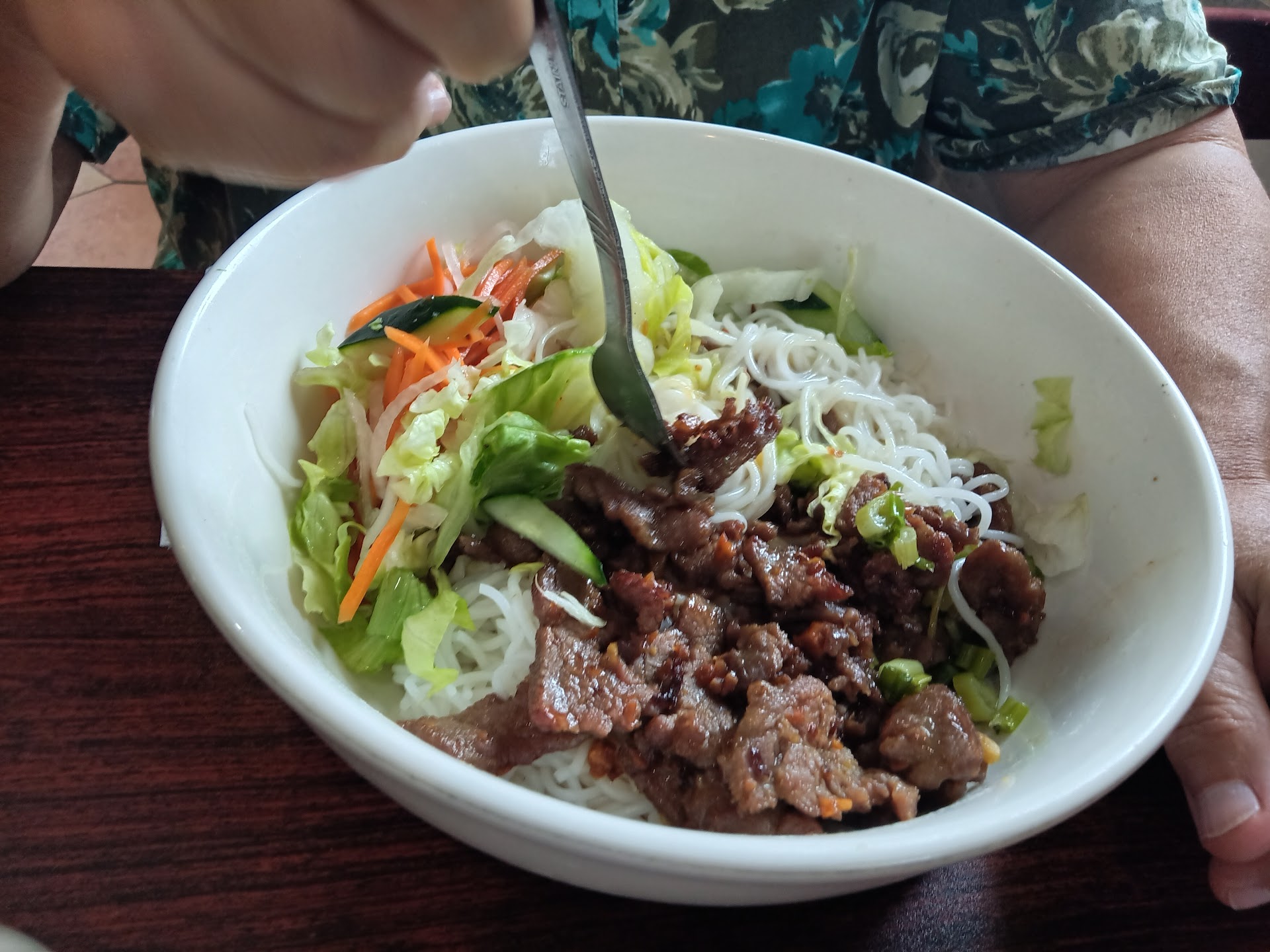 The portions here are really great for the price. The food is so fresh, especially the pho. Nice fresh onion, cilantro, bean sprouts (not even a little brown--and those are the test of freshness because they brown so fast!), jalapeno, and raw beef. (And yes, the beef comes out to the table raw. That's how pho is served; you add your uncooked beef and veg to nearly-boiling stock. People complaining about the uncooked meat have no experience with pho.) I've had a couple other meats, and if it isn't beef it's cooked.