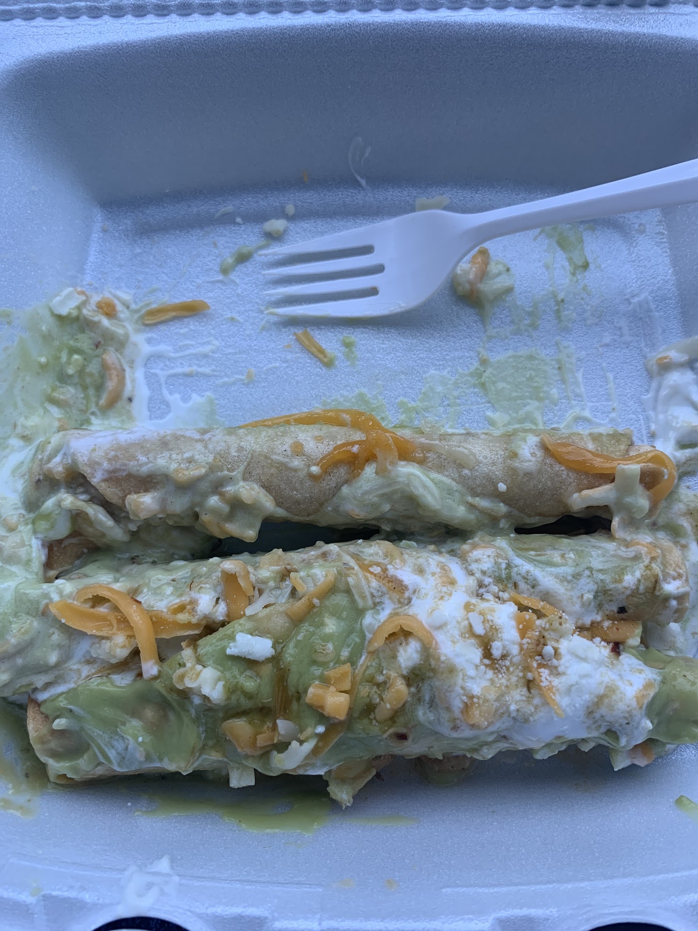 I popped open the tacos and saw a very small portion nasty slimy chicken that looked like they pulled it from the remains of a thrown away rotisserie chicken. It looked nasty.