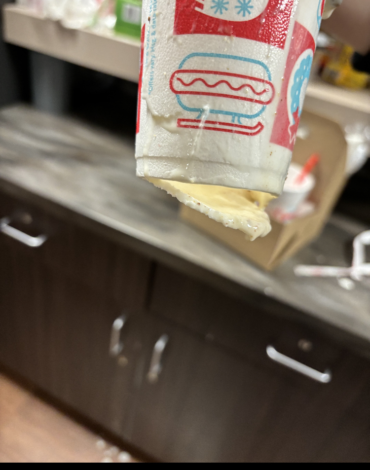 Upon getting our drinks in a carrier last night my boyfriend immediately felt liquid on his lap. He pulled out a drink and there was a hole on its side with soda flowing out. We pulled over and told an employee who said she would remake it. The liquid kept pooling in his lap and he found another drink with a puncture. The worker was still standing by the window watching soda and water pour all over my car without a second thought. She said sheād remake the entire order but was unapologetic and didnāt care at all.