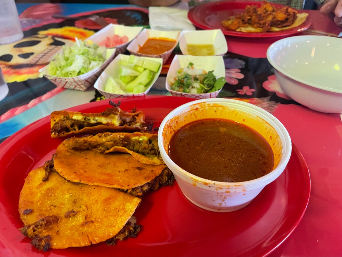 I had the Birria Tacos con Queso. My husband had the Tacos al Pastor. Both plates were delicious, but somewhat greasy. The chefs are from northern Mexico so expect a different flavor than from your typical Mexican restaurant in this area. It was new, different and delicious.