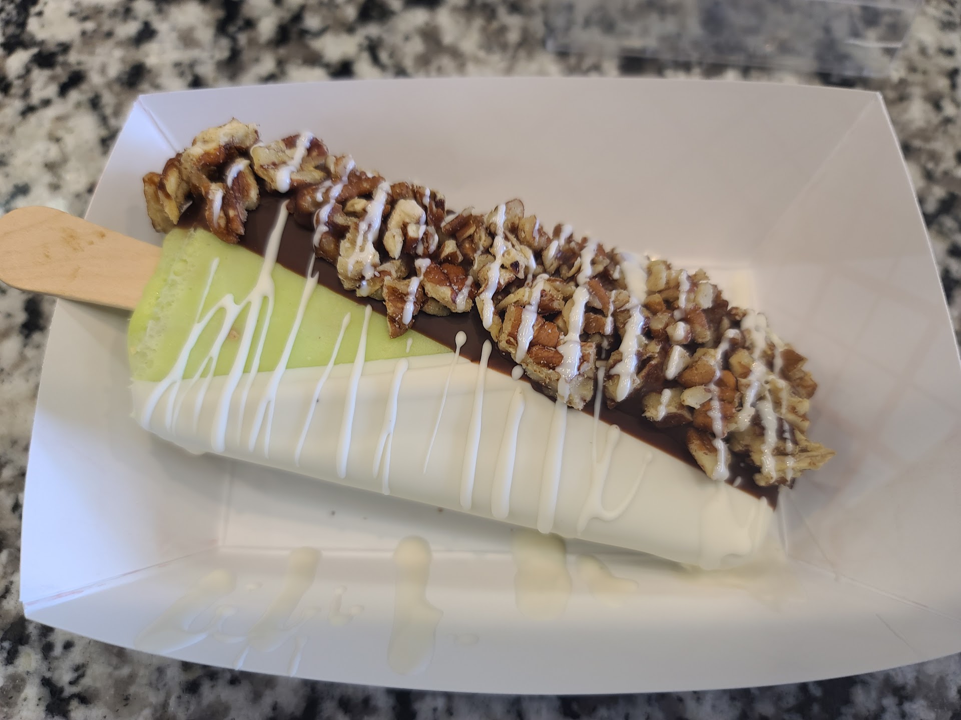 Great staff! Pobrecitas have to happily serve people this stuff though. Your staff is amazing. Anyways the quality of the chocolate used there is cheap kind of waxy. Like those cheap Easter egg chocolate candies. The paletas aren't flavorful they just try to cover that up with dipping the paleta in cheap chocolate and cereal. It's what we call cochinadas. Try the paletas themselves. Vague flavored paletas especially the ones that arent cream based, your fruit based paletas need help. A cheap gaudy take on paletas, good idea but the quality is lacking. I can see if they used quality chocolate to dip them in. It all tastes like sweetened wax, like those cheap foiled easter chocolates. People do go there come on its time to give them a higher quality chocolate/paleta you know you can afford it. Of course people are going to buy it coz its sweet and dipped in cereal they think its cool/gourmet but they dont know any better/have never tried a quality paleta/agua. A+ on how colorful everything is though. They try to make interesting aguas there but they need some help from someones grandma....