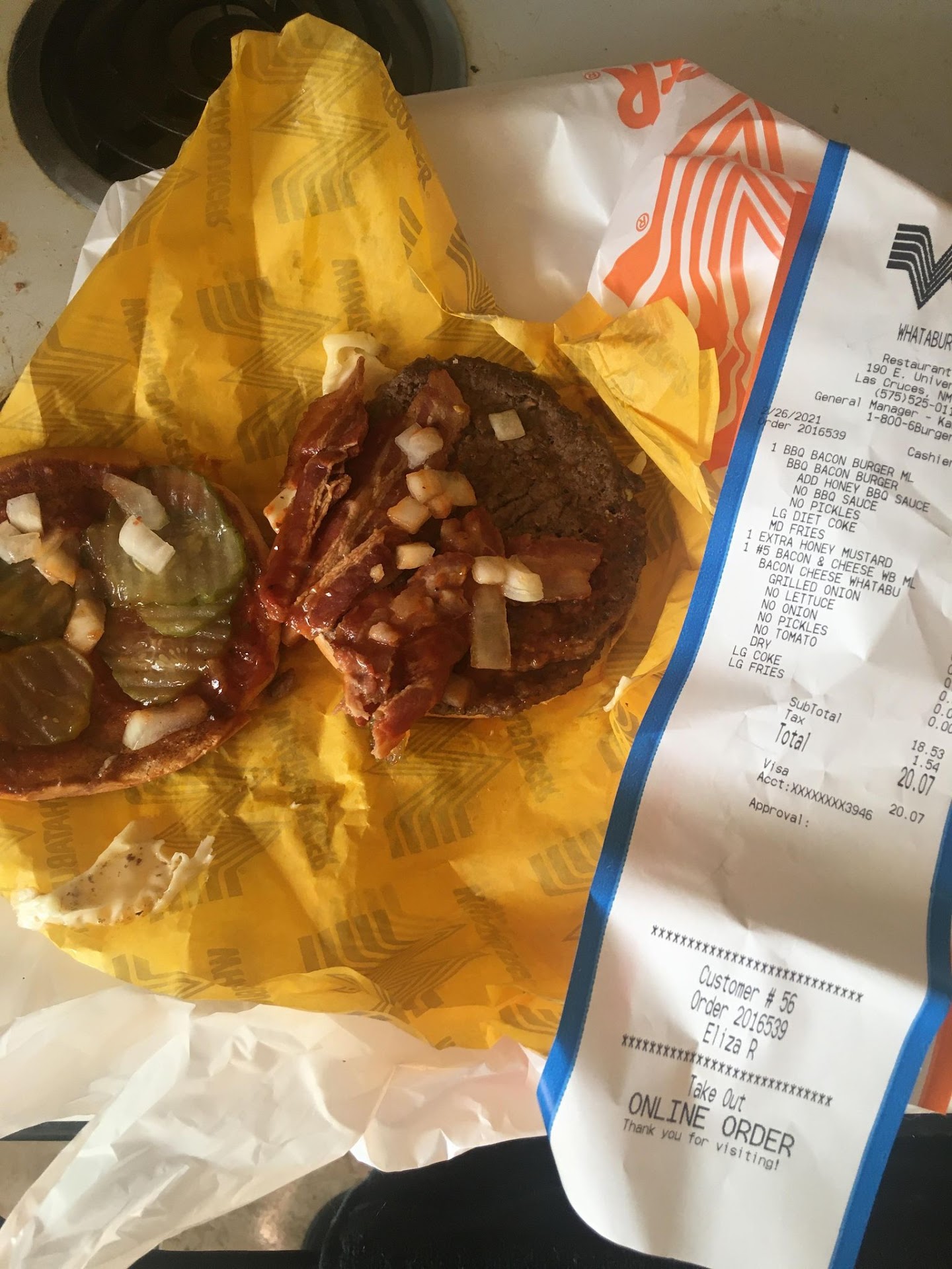 Read moreSo I have been going to Whataburger in various locations since 2009 in TX and I ALWAYS substitute the mustard that comes on the burger for honey mustard. Never a problem. I was traveling back to TX and came across one in NM. Was soo excited! Ordered my usual and the cashier, Allyssa M told me that they couldn't substitute HM on the burger but I could get it on the side. I told her(nicely promise) that it's not a problem at every Whataburger location I've ever been to and could she ask a manager (receipt says Karla Gamboa was on shift at 7:03:26pm on 12/21/2020). She did so and came back with the same decision. I told her np I'll just take it on the side. Then the thought crossed my mind that usually when you get HM on the side it's an extra charge. Asked and sure enough they charged me $0.35 extra. I'm not going to lie, at that point after driving for 19hrs and being tired, I did say that they were a-holes but didn't yell or anything. I could've gone to a different fast food, but I drove out of my way to come here and so I was just really disappointed how I was treated. If you can't (or don't want)to make a substitution, at least don't charge for the side. I did give 2 stars vs 1 because the lady who delivered it, was nice and I'm pretty sure that Whataburger as a company is about customer service. Oh according to the receipt the store...