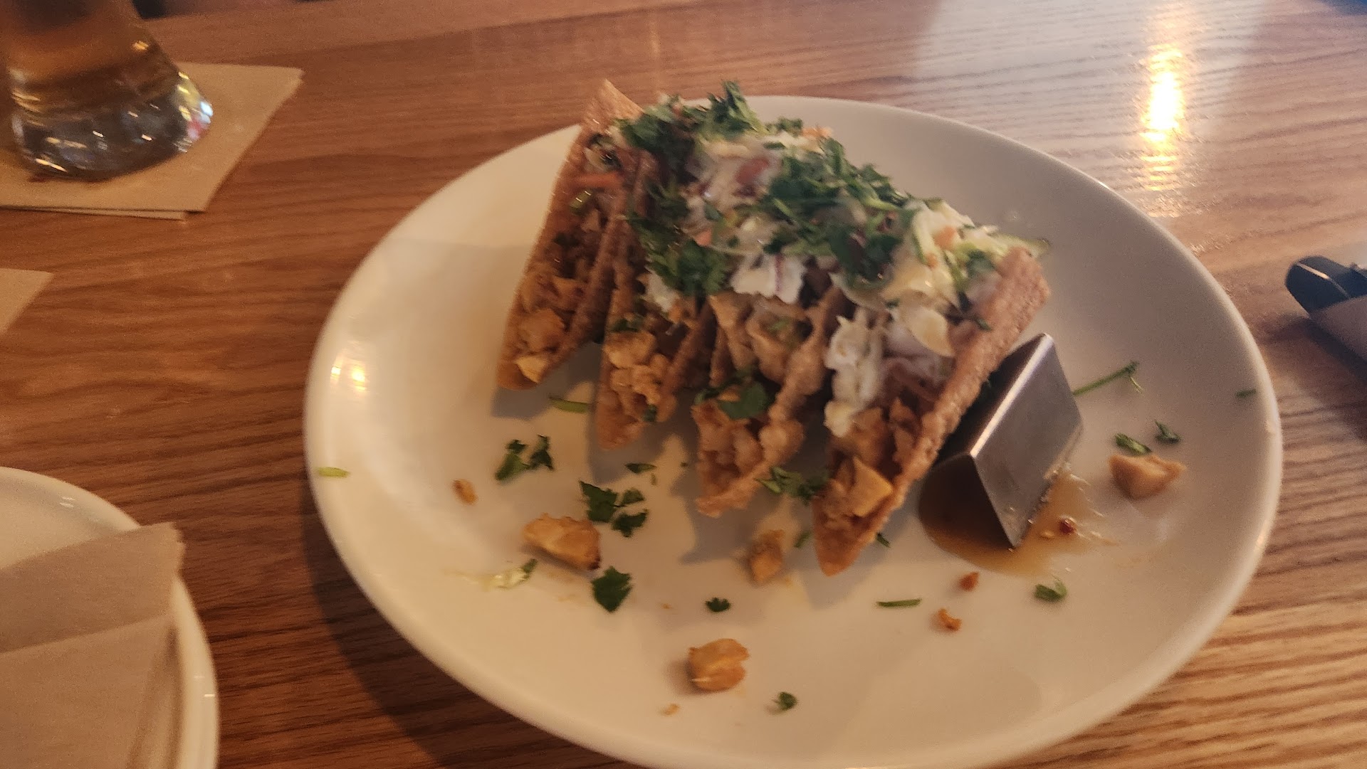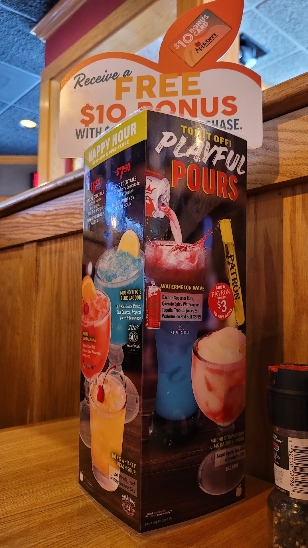 Came in around 4:45pm. Business was picking up, and more servers were starting to arrive for the night shift. We had a wait of about 15 minutes for 2 people. We sat and waited and looked around. The place is neat and clean. Signs everywhere for specials and rewards program. We were seated in Desiree's section. She greeted us timely and took our drink order. It was happy hour, so we ordered a draft beer for $1 off, and on the tablet, we ordered our appetizer for 1/2 off. Happy hour is from 3-6pm and 9pm- close. After we ordered our appetizer through the app, Desiree came over to take our entrée order. On the back of the menu are the 2 for $20, 2 for $29, and 2 for $32 meal deals. I ordered the bourbon shrimp with Cajun seasoning and chicken with mashed potatoes with a Ceasar salad. My husband ordered the honey glazed chicken tenders with penne pasta with a house salad. After she took our menus, moments later, she brought out our appetizer. Won ton chicken tacos. FREAKING DELICIOUS. We saw it on the promotional table tent and had to give it a try. Well worth it. As we finished our tacos, our salads were brought out to us, and Desiree took our app plates. We then munched on our salad as we waited for our entrees to be brought out. 3 minutes after finishing our salads, Desiree took our bowls, and then the manager brought out our entrees. Streaming hot and timely. We ate and tried each other's dishes. To be honest, the shrimp seasoning was not Cajun. The chicken was juicy, but the flavors were not what I was expecting for a "cajun" or New orleans dish. The mashed potatoes were amazing, though. My husband's pasta was good but not amazing. Overall, the appetizer was phenomenal. The main meals were just okay. Veterans discount was applied to our check and we paid through the tablet on the table. We had gift card that wasn't working on the tablet so Desiree took it and applied it to our check for us. We were then able to pay the difference on the tablet with our credit card. Easy and simple, an enjoyable experience, wonderful...