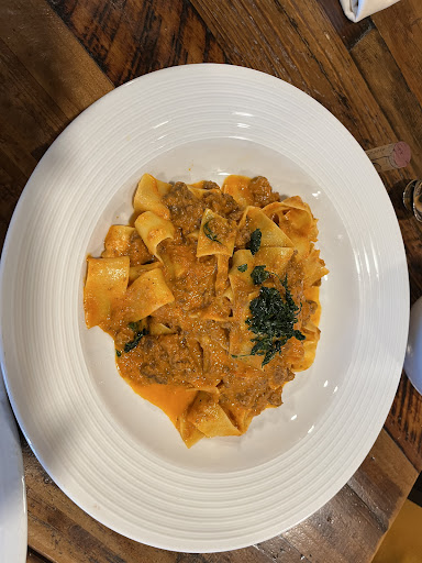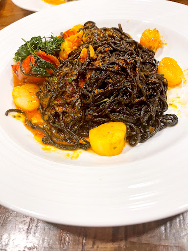 To begin, my girlfriend and I tonight shared the house salad (Insalata Aromi) and it was amazing. Thin, tasty strips of duck, dried cherries and almond slivers generously sprinkled over a bed of mixed greens and dressed perfectly. From Aromi's extensive menu, my girlfriend ordered the rigatoni bolognese; I had the spaghetti neri (squid-ink spaghetti with scallops and lobster - just $29!). Both were spectacular. Either dish would cost twice or three times as much in a similar restaurant somewhere on The Strip.