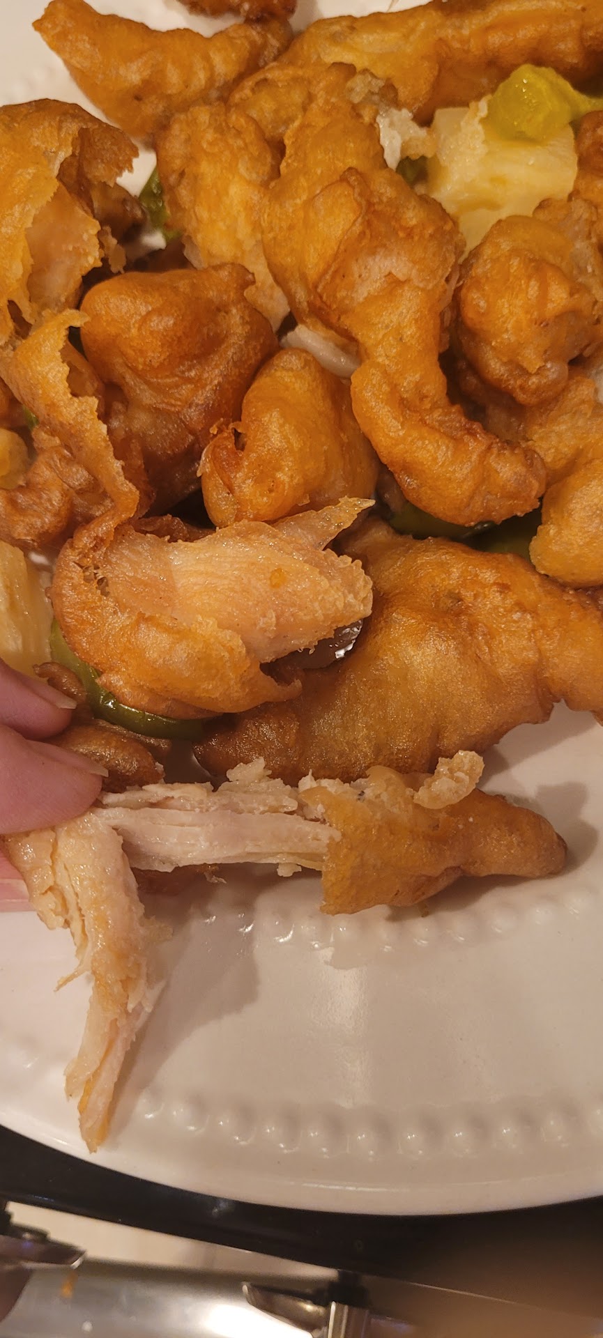 After several years since making this review I decided to give them on more chance. Omg I'm sorry I did. I ordered sweet and sour chicken dish and I'm not sure if this is even chicken. It looks so nasty and it was super oily. My husband and I thought it was fish mixed with fake meat. Ripped a piece in half to show. Wth are they using for chicken??? So disgusting!!! We couldn't eat it! Waste of money. We also order chicken fried rice. The rice seemed stale and not fresh and we picked out all the chicken because it was also sketchy looking. Rubbery. We are done...