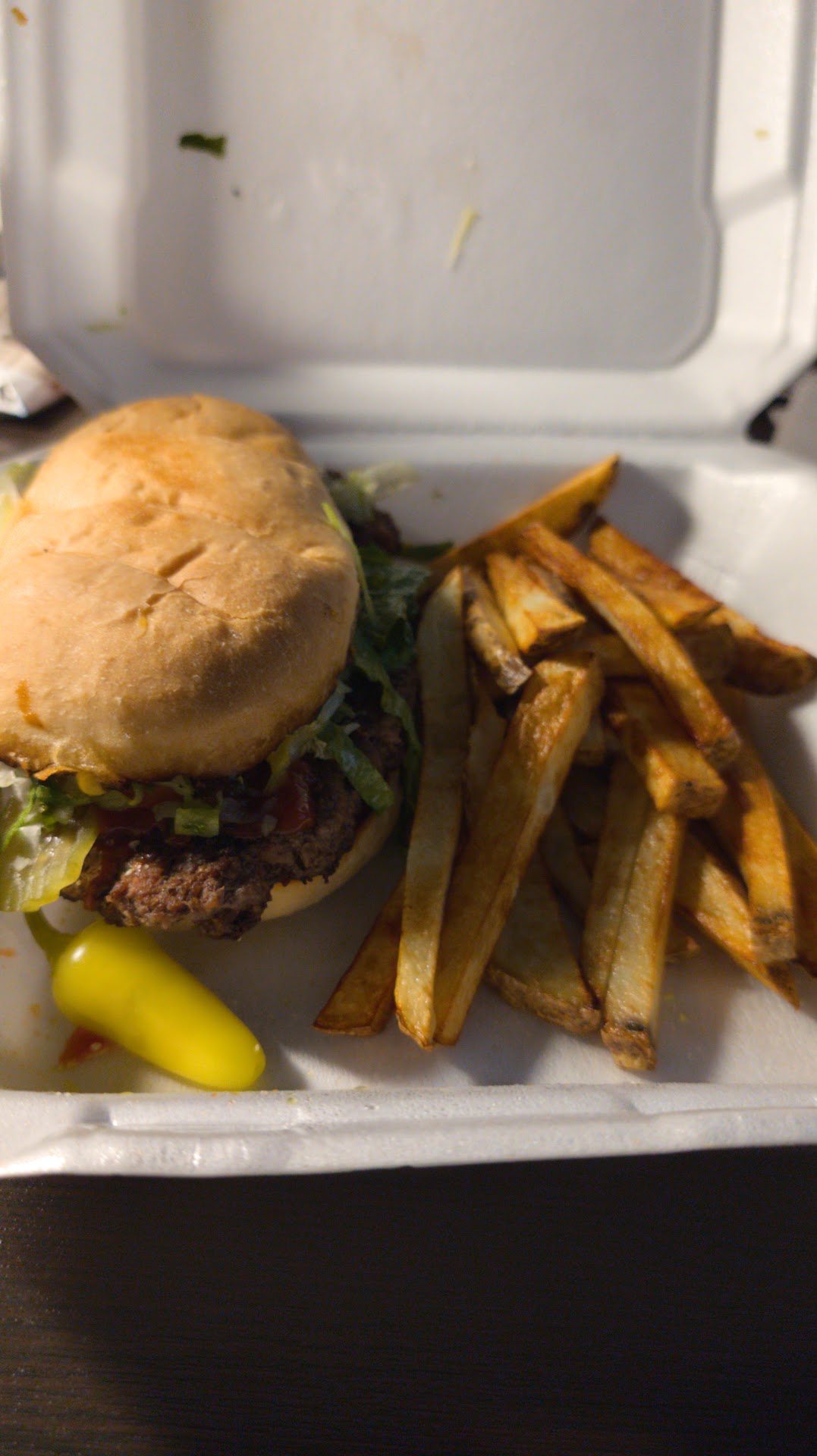 Ok so after seeing reviews I wanted to enjoy this place the lady in front was very nice so I appreciate that. So I ordered the enchiladas rice and beans with red chilis, and burger with fries. So start off with the terrible first fries where really under cooked I can tell they are fresh cut but they are really undercooked they where still hard you can even see them being white a bit and entirely no seasoning no salt no nothing. Burger wasn't too bad but wasn't the best had a flavor to it and the bread felt full like it was a lot of bread for some reason. Enchiladas themselves the cheese one was good the beef was terrible the beef itself had a flavor to it not sure if it was good but I'm not sick so it's just the flavors being added and rice wasn't edible it was soupy and very soft like I was 95 years old. Beans was ok but after eating a bit of everything else I wasnt Interested. So overall maybe I should have gotten bbq as t a bbq spot cause what I had wasn't it. The last was just a pic of some...