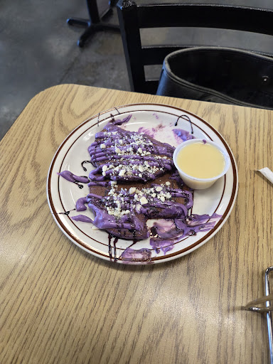 Read moreWaited for 23 minutes before we were acknowledged. My bestie wanted iced coffee but they only have regular whole milk so we both just went with waters. We ordered a meal with Ube Pancakes and Bananas Foster French Toast. We also ordered a side of 1 sweet crepe with strawberries. The environment was pretty gross with the table and menu both having sticky substances on them. The floors looked like they don't get mopped and several tiles had cracks and food bits in them. Both the table and the chairs had to be stabilized with sugar packets because everything rocked when we tried to cut into our food. When the food came, the ube pancakes looked like a birthday cake, and tasted like food coloring from icing. Bananas Foster French Toast was good but only had 4 slices of banana cut into it. Potatoes were bland with the meal and the crepe was inedible because the "sweet cream" was sour tasting and came with strawberries but not syrup or whipped cream. One of the strawberries still had a cut green leaf sitting on it which you would think someone would notice with NO other toppings to hide it. The server asked a cashier to remove the crepes from the check and he only discounted our check with a "friend's and family discount" which would take off less money than the crepes plus their tax cost. The server told us to ask the gentleman to fix it at the front and so we did. Another female server with long black hair got an attitude about us asking to remove the discount and just remove the item. We could hear her talking sh1t about us asking to correct the discount from the kitchen area. When the gentleman came up to adjust the check and cash us out, we explained that we could absolutely hear her talking sh1t from the kitchen. The female server heard us and said "oh...okay" and walked away, but then came back when we were speaking with the manager a few minutes later to aggressively print blank paper from the terminal so she could hear what we were telling the manager about our terrible experience. I am honestly not sure what it was that people loved about this place, but they can have it. 1/10, will not check...