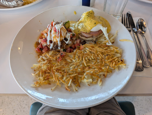 I had an egg Benedict combo which let me have a half order of two of the many Benedicts on the menu. It was hard to pick there were so many and nearly all looking delicious to me. I ended up with the classic and sope. I did notice that the hollandaise on my classic seemed to be a bit split - either that or they added a bunch of butter after - but it still tasted fine. In fact both Benes were delicious. It's my go-to so I'll be trying others next time we visit.