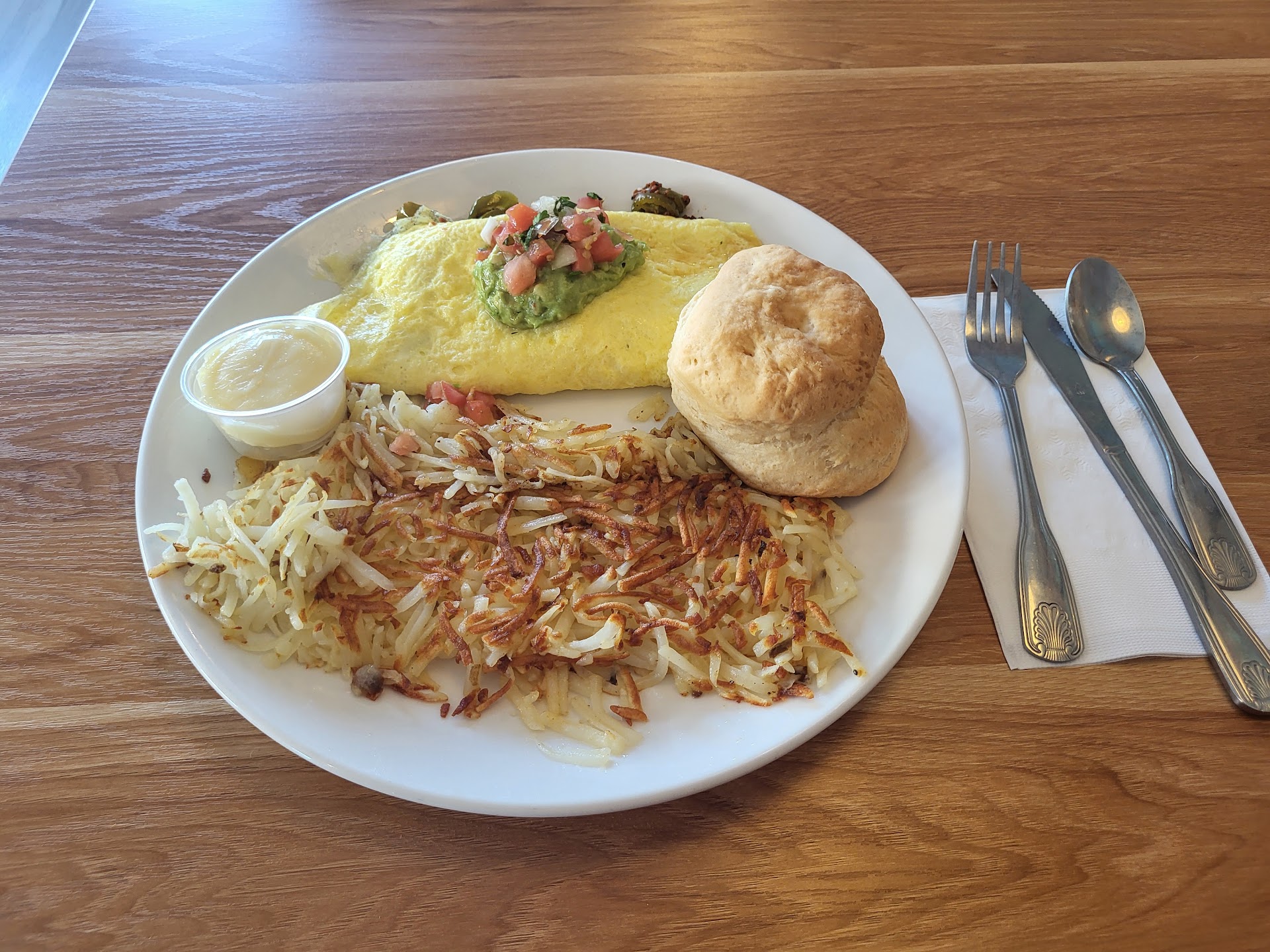 Read moreI've tried this place twice now and doubt I will go back. Staff is nice. My issue is with the food. Every omlette I've ever had in my life had the eggs cooked in a pan and then the toppings cooked into the egg. The omlette I had here was just the egg portion cooked and then the toppings cooked in a separate pan and then just shoved in the omlette envelope. The second time I had a breakfast wrap which was fine but nothing special. The fruit side was disgusting and sad. I couldn't eat it. My husbands order was completely wrong due to the server. Their plate presentations also leave much to be desired. Some of the plates are just way too big depending on what one orders. A sandwich and a side of fruit should be on a smaller plate. It looks real bad with these jumbo heavy plates. Like I mentioned, everyone is nice there but the second time we visited it seemed like our server was a space cadet hence getting the order wrong and as well as charging me more than the previous server charged on our first visit for the same drink I ordered. There are better places to have breakfast...