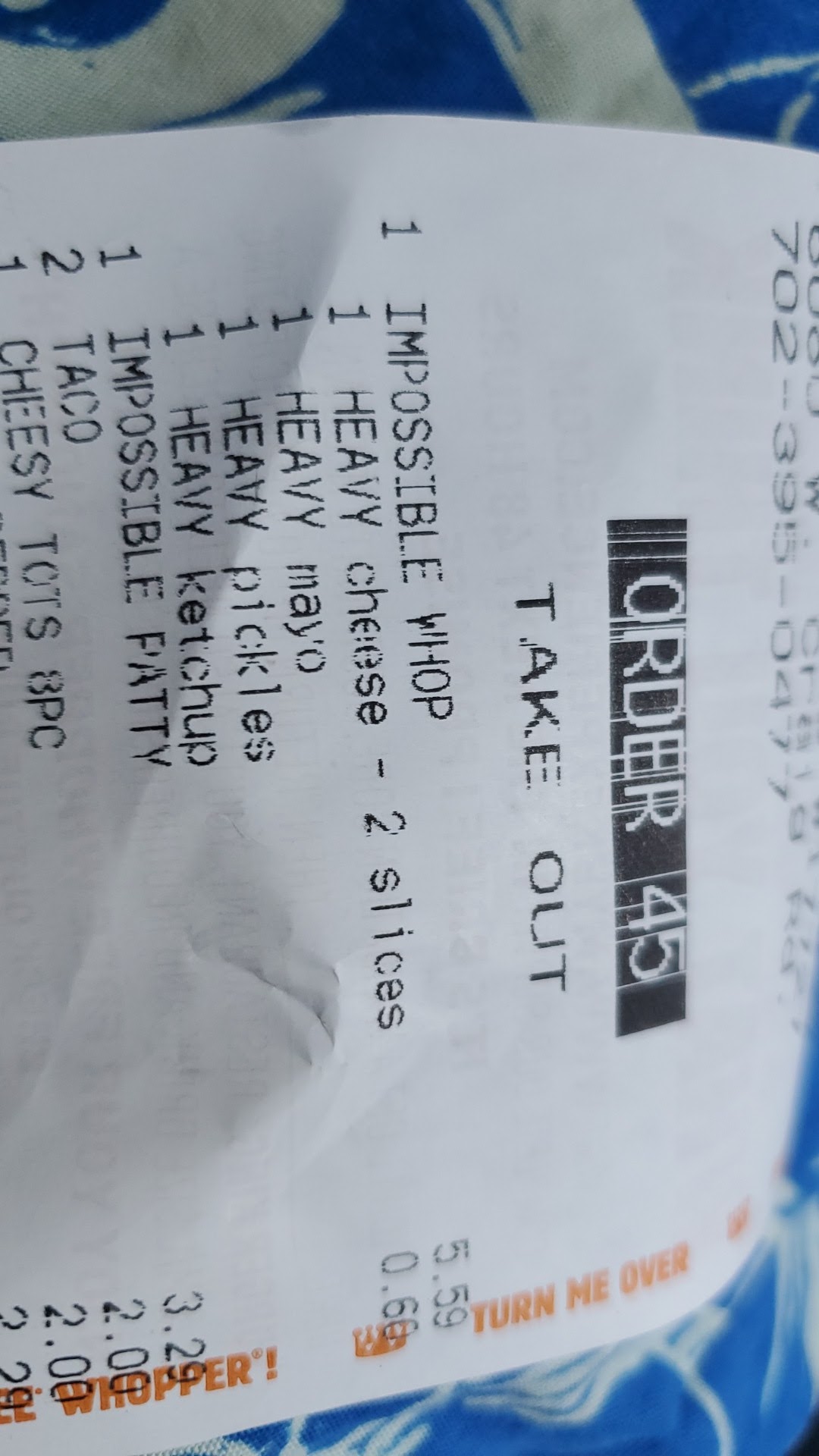 Ā Ā Ā Read moreI must admit I have never had high expectations for Burger King or the quality of its employees but to say I am disappointed would be an understatement. Ordered two meals, paid an additional 3.80 for an xtra pattie on one of the whoppers which I didnāt receive. After arriving at home and realizing the mistake I called to let them know, the phone rang at least twenty times before someone answered. The woman who took the call was rude to me when I explained what the issue was. I had already made it back to the house to discover my food was not correct. I realize itās only fast food but to not offer an apology after paying 30 dollars for two āvalueā meals and the only resolution she offered was to drive the food all the way back to have it made again seemed ridiculous. To make matters worse I was hung up on without coming to a fair resolution. I will not be coming back to this location and I encourage management to reevaluate how they deal with customer complaints moving forward. The fries and my impossible burger were cold and they didnāt put any napkins in our bag either, beyond...