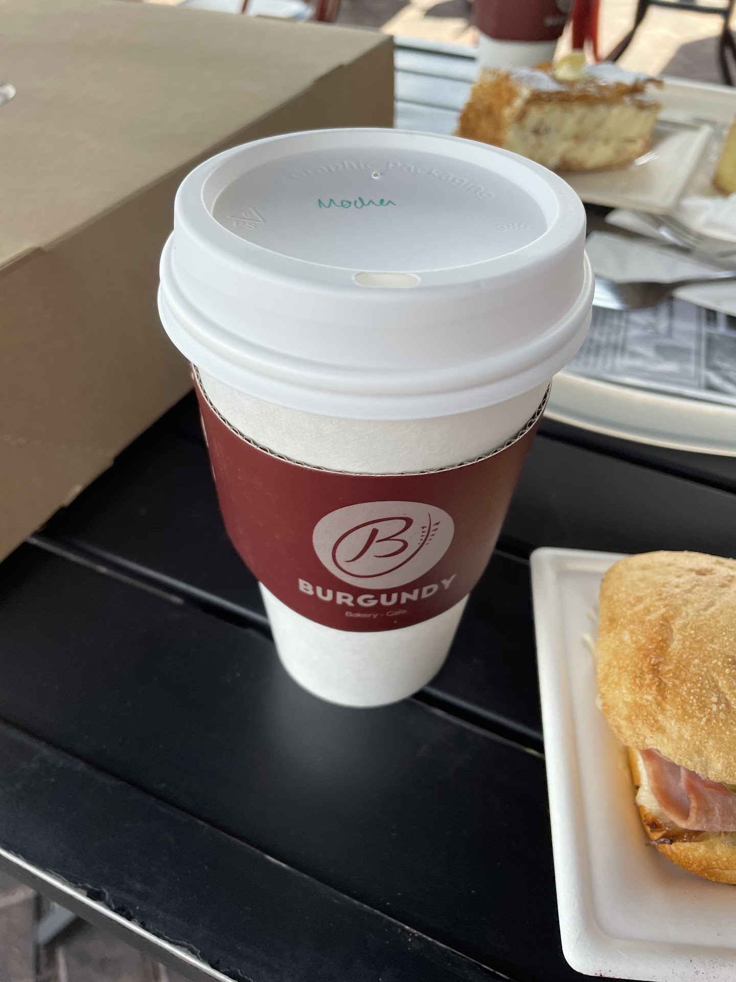 The French inspired decor is alive and well here at Burgundy's. The seating is optimally designed for mom & pop sized restaurant. The staff was friendly and working efficiently on a busy morning. There were plenty of macaroons, danish, pastries and sandwiches that looked delicious and I spotted the Cubano...