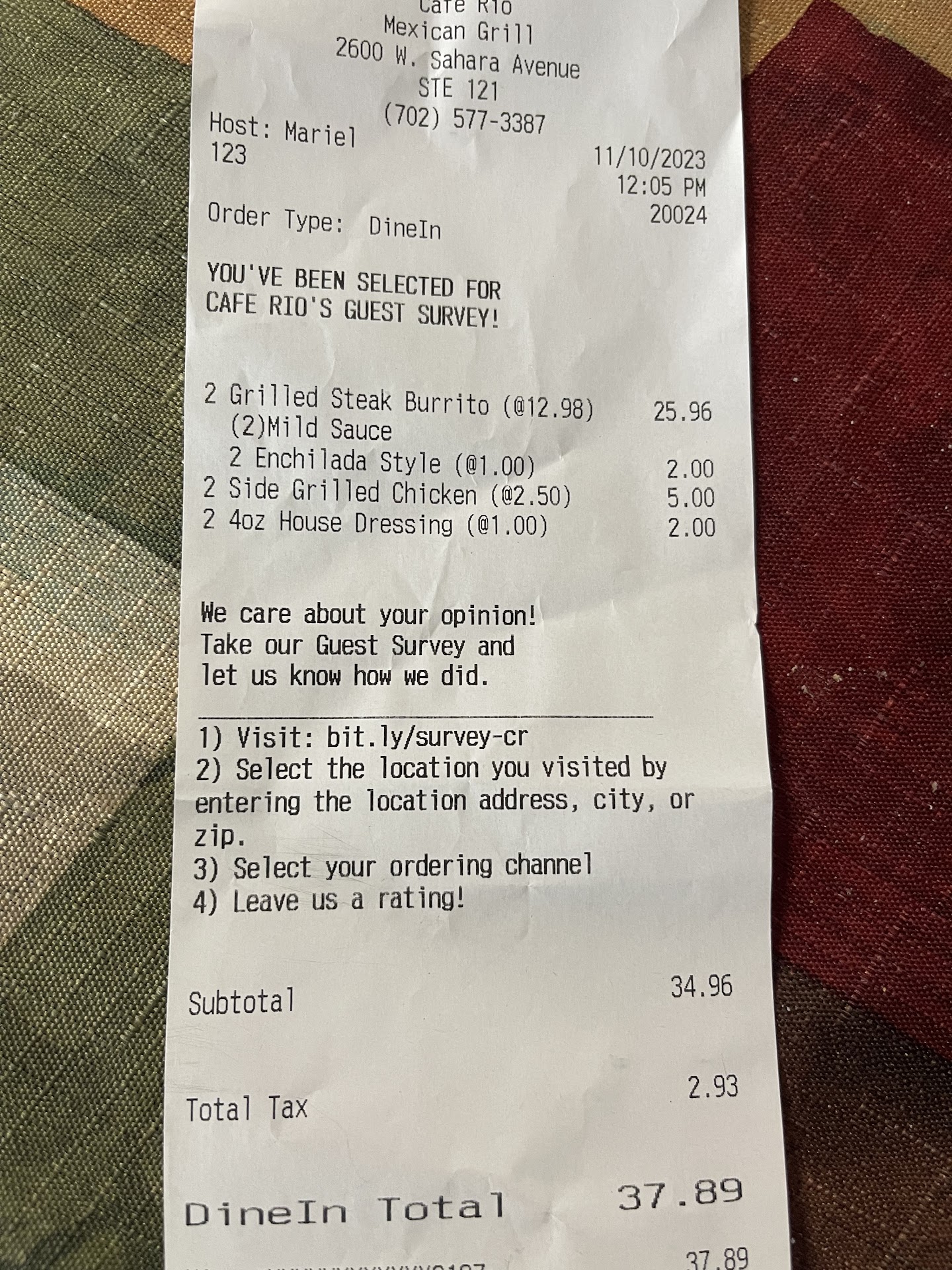 Read moreI was so disgusted by our visit to this Cafe Rio over the weekend. We were traveling from out of town and were excited to be back in an area with a Cafe Rio. Our excitement was quickly dashed by the crusty food that was available. Nearly every item was either out or very low. The person making our food was literally scraping the bottom of each tray. Had we not been craving Cafe Rio, we would have just left, and we probably should have. Every surface was filthy. The glass that separated the food service line and the workers, the doors, the drink area, tables, floors- all covered in grime and fingerprints. There were several workers, so we couldn't understand how so many options of the food were low or out, and why everything was so dirty! Obviously they were not serving their employer well, and this was 2 hours before closing. We ended up asking for a partial refund because the food we did get served was cold and made our stomachs turn. The manager was nice when asking for a refund, and I appreciated that. I suggest upper management keep a better eye on this location. I will avoid this particular establishment in a future trip to Vegas. I love Cafe Rio, but this was beyond...