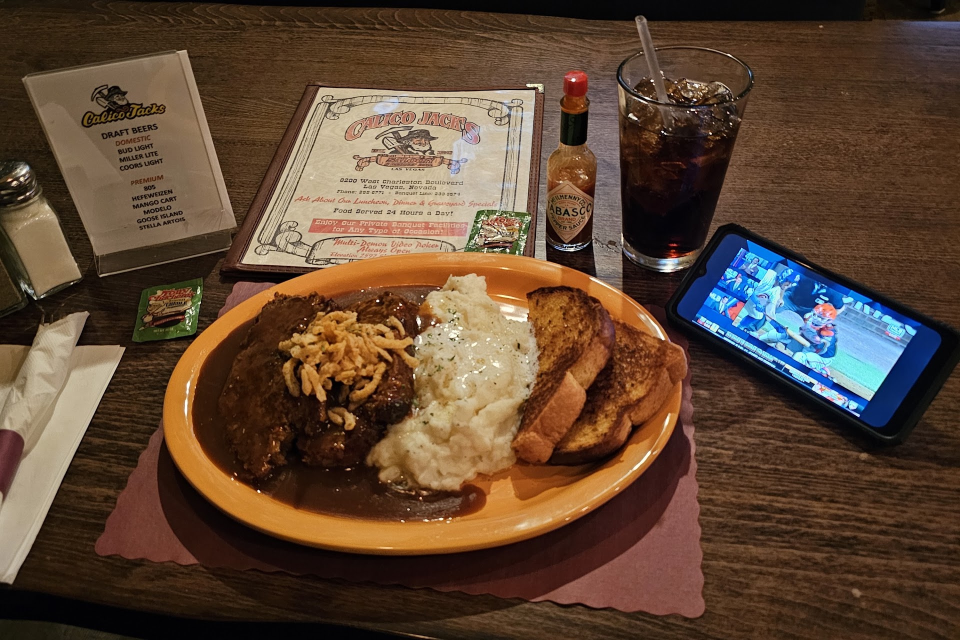 Read moreI've been eating at Calico Jack's for about 6 months or so and have always enjoyed the Special, Chicken Fried Steak with 2 fried eggs. I've had to return the eggs a couple times but the cook finally cooked the white part thoroughly, with no runny yukky slime and left the yellow center nice and runny as it should be. It's always been delicious and fresh, with the usual side choices for less than $10. Today, I thought I'd save a little money and tried a lunch special, open face meat loaf with mashed potatoes for $7.77 or something. I knew that I had made a mistake when I saw the plate coming toward me. It looked really bad. It was dark gravy just smeared over meat and toast, I guess, with some mashed potatoes that are sprinkled with little green things. I couldn't tell what the green things were by the taste, so I asked for butter and added salt and pepper to everything. After a few bites, I told the waitress that I usually order the Chicken Fried Steak Special and I'm not happy with this dish. She looked at me disapprovingly and said she can't take it back. I'm not at all happy with this attitude and I know if it was a better restaurant, I'd have no problem with returning it. I ate only half of the dish. It was not at all as good as I had hoped and I'm very disappointed in Calico Jack's for making me eat something I didn't enjoy.