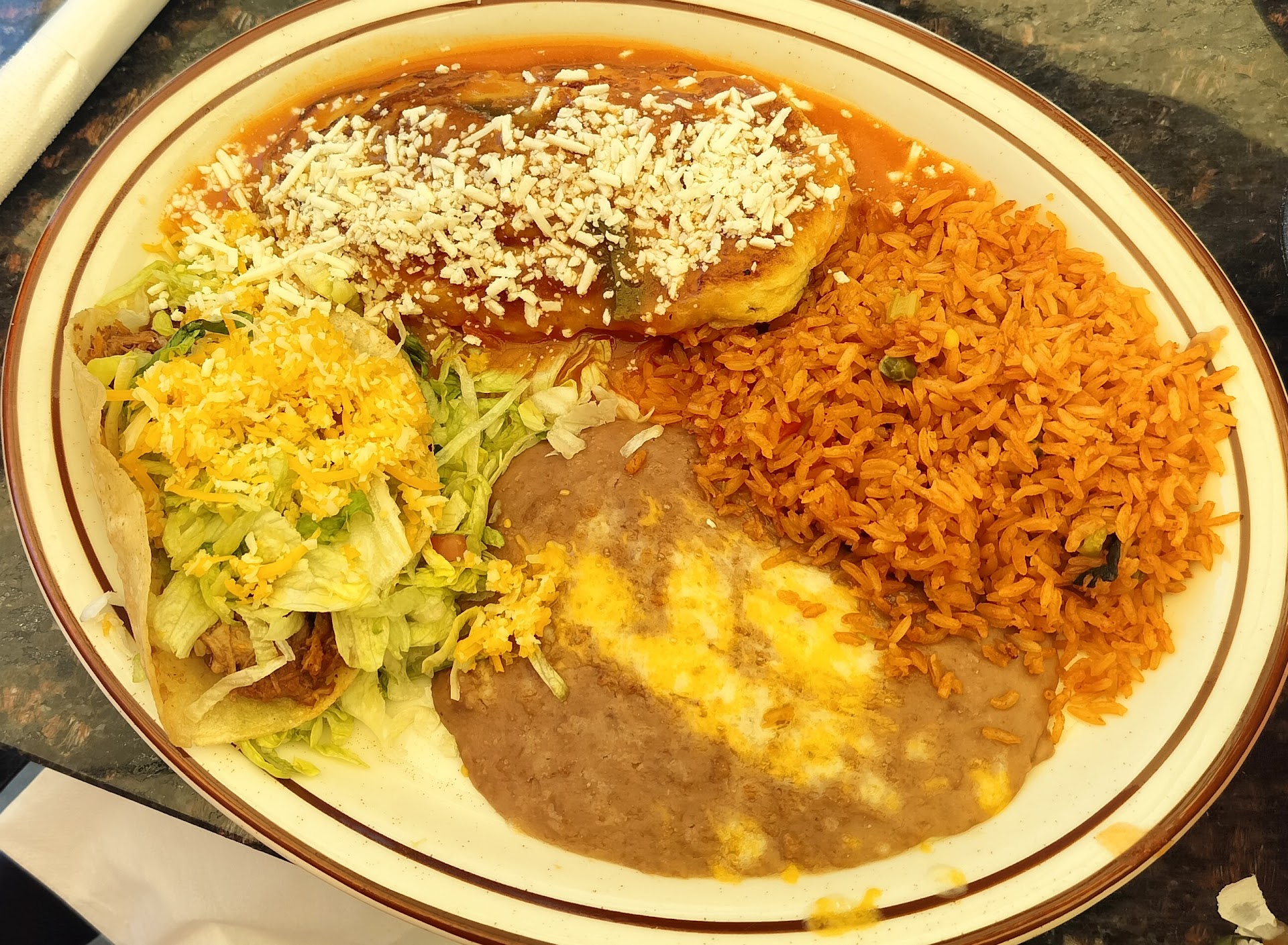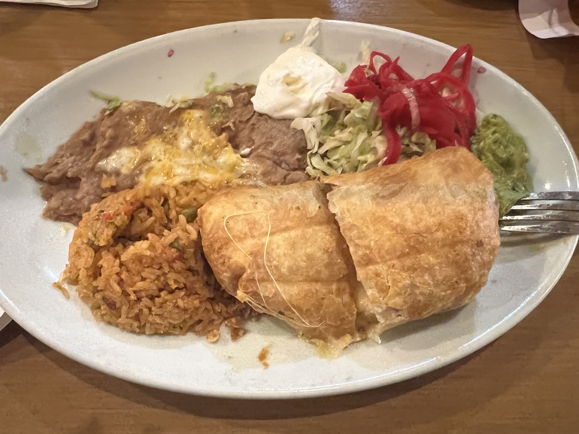 Food took a while, a long while (sensing a pattern yet?), and when it finally showed up... oof. It was impressively bland. I didn't know it was possible to make Mexican food taste like nothing, but hey, they found a way.