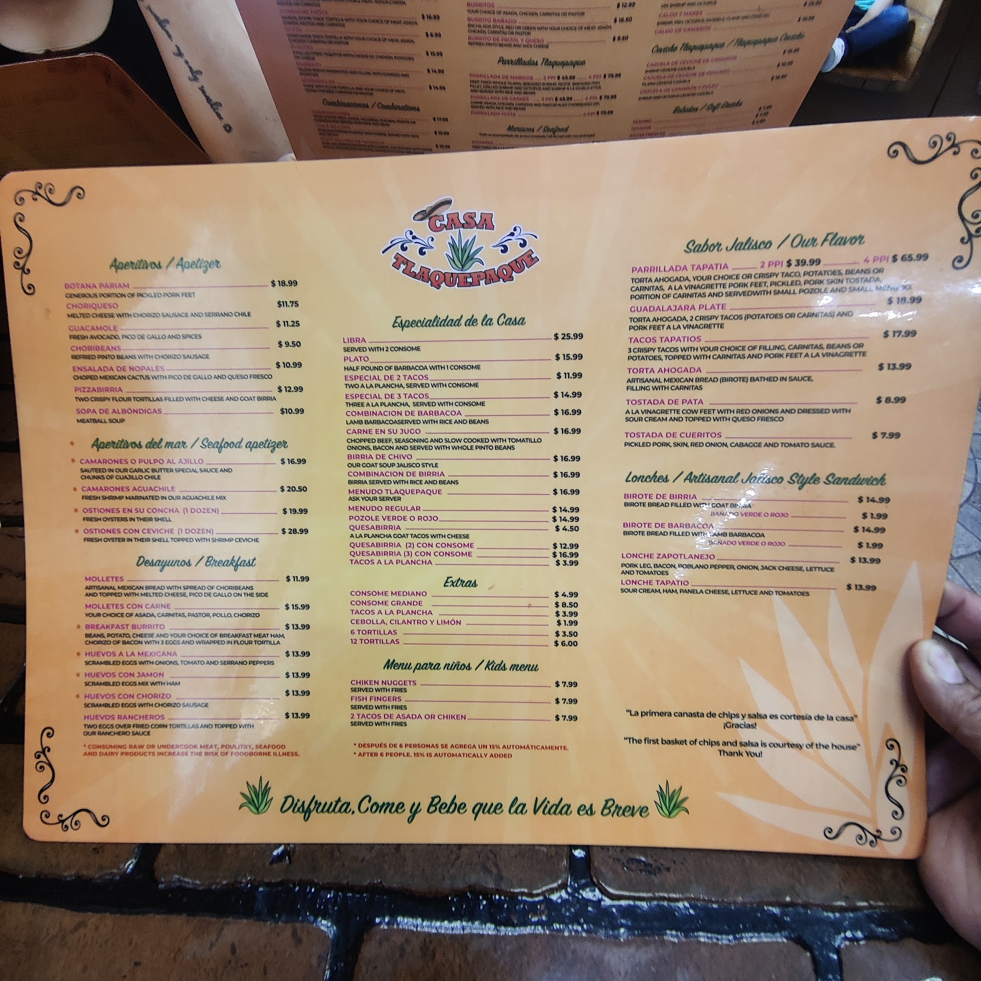 Read moreThe restaurant was fairly busy when we arrived. We were sat promptly even though we had a party of 10. The servers were a bit disorganized, it took us several attempts to get a high chair for my grandson and 2 attempts to bring us waters for everyone and napkins. They start with complimentary chips and salsa but the chips were a bit stale and each portion was not sufficient for our large group so we asked for a couple more baskets. We had seen some pictures of the menu but quickly realized that they scaled down the menu. The whole fried fish was not on the menu but we asked of they could still provide it and they did. The oysters were a solid 7, good but not as fresh as I would've liked. I didn't take a picture but we ordered 2 quesabirria taco orders which were very tasty. The consome however is on the side at an additional charge. The tacos tapatios were tasty. The barbacoa was good but wasn't pleased with how dry it was though the flavor was decent. The horchata de fresa I ordered was pretty delicious, you can tell it's made it house and not made from concentrate.