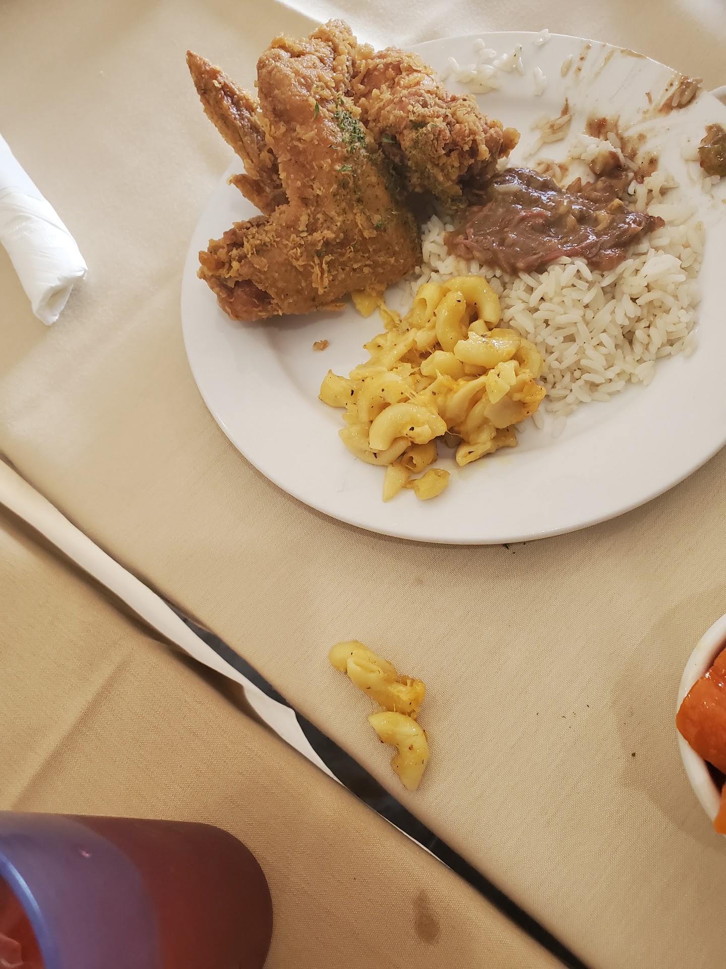Best kept secret on MLK! Yes they are still open during the pandemic and pushing out fresh food all day. We walked in and was immediately greeted by her friendly staff. In the background played smooth jazz setting a cool calm environment. Everyone had masks on and hand sanitizer was present. After being seated by her pleasant staff we ordered water with lemon and sweet tea. That sweet tea (x2) of theirs gave me life 4real from the heat wave outside. We patiently waited for our food out of the scratch kitchen listening to smooth jazz and other soulful songs. Periodically the staff would check on us to see if we needed a refill. Oh when we received our heavenly meals! Oh what a time, oh what a time! It was so fresh and so delicious. I will definitely be going back again and again and again. We've ordered her cornbread, fried chicken 3x, fried snapper, macaroni and cheese, rice and gravy 4x and sweet potatoes 3x. My two favorite meals are the FRIED CHICKEN and HEAVENLY SWEET POTATOES! Y'all don't sleep on those sweet potatoes at Chef Carols! Her sweet potatoes are HEAVENLY! They remind me of my great grandmothers cooking. I'll be going back at least 4x...