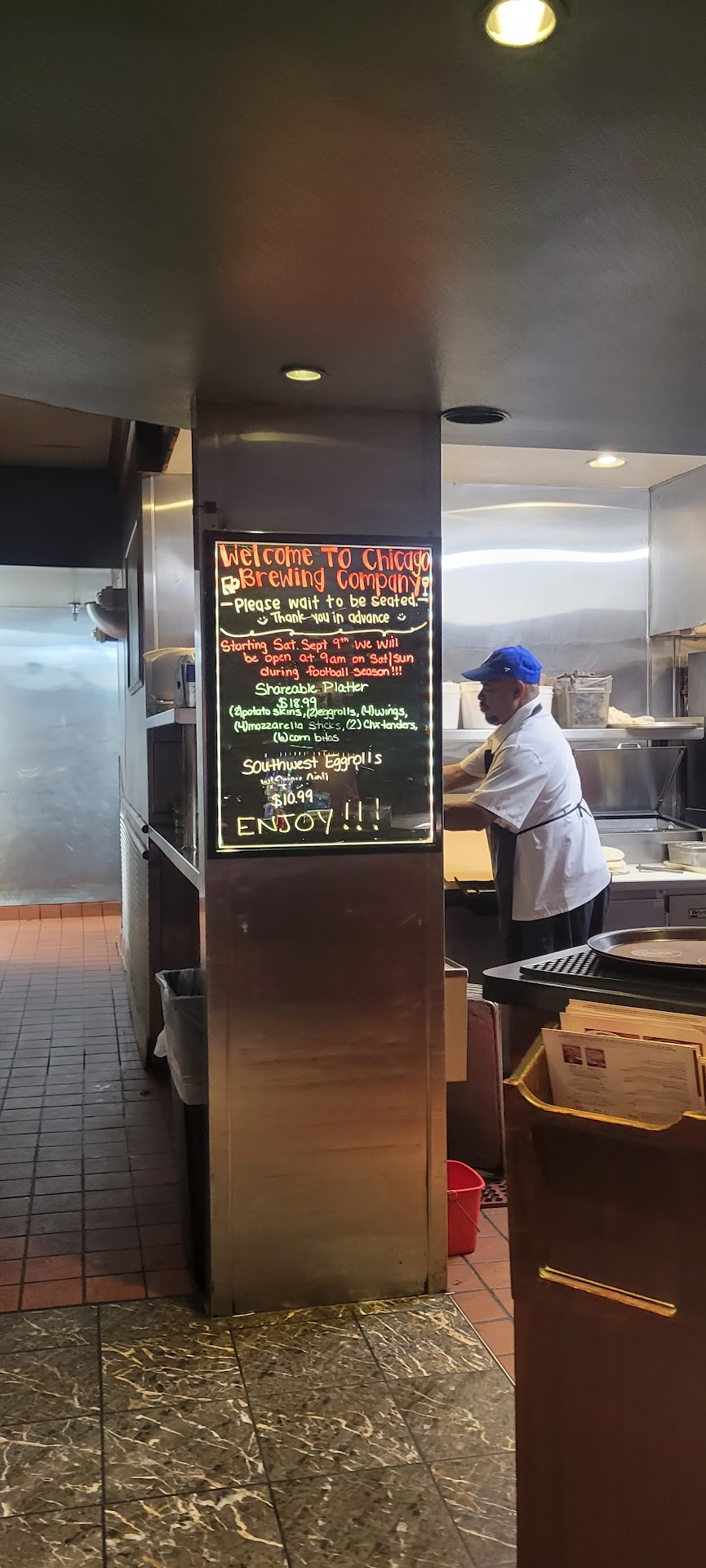 Read moreNever even got to eat here. 7/20/25 about 6:30pm. Walked up to the sign that said wait to be seated. They weren't very busy. Waited awhile. One woman was doing things and men workers standing in the back talking and whatever. After awhile I seated myself at the bar top. Soon 3 young men walked up the stairs and stood at the wait to be seated sign. The woman working rushed over to them and gave them menus and seated them in the dining area. Not long it happened again with 2 more men that came into eat. I tried to politely get the attention of anyone working but they ignored me, I am a woman alone. A couple came in and sat at the bar top down from me. They also got ignored. The couple talked to a man that came out of the kitchen that had his pants sagging down to his legs, underwear showing, complete butt hanging out. He got sassy with the couple and went back into the kitchen. After almost 20 mintues total I just got up and left. Staying at the Four Queens Hotel I had looked at the website and was looking forward to eating at Chicago Brewing. I doubt I will come back. I didn't even go to Magnolias and I know they are good. I left and property completely and ate...