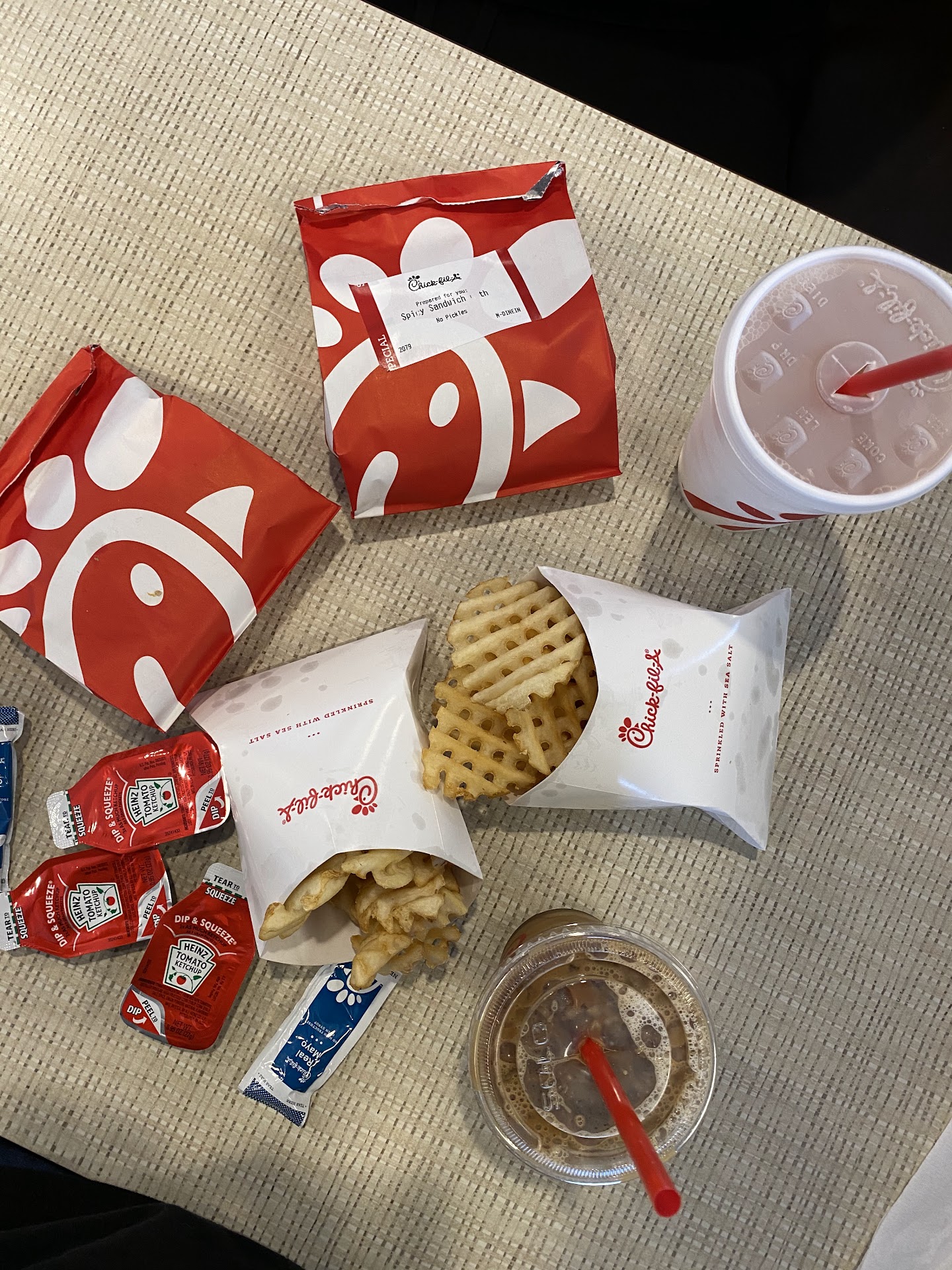 Ā Ā Ā Read moreFirst time ever at chick fil A.. and I must say I was very disappointed. I have heard many good things about their customer service and food , so I was really excited to try. Honestly I feel is a little pricey but I don't mind because I believe you pay for quality.š Time was okay.. at first the person taking my order was friendly. But at the window is another story she didn't great me and really rushed me. .. my window wasn't working so I apologized that I had to grab food from side of door. The lady looked at me and looked away kinda rude ..made me feel really stupid after that she gave me both my bags and I accidentally dropped the one with my fries all over my feet. The lady looked and rudely laught and went away from window . When she came back I asked if there was any way she can top of my fries since half of them feel on my dirty floor . I didn't ask for new ones I just asked if she kindly top them off. She looked at me weird like not knowing why I would even ask .. she told like three people and after I sayed nevermind another lady just gave me new ones and walked away annoyed. I feelt like a idiot. Honestly know is a buisnebu and you just don't hand stuff out but I thought they would be nice enough to see it was a accident.i get if I was being rude or something but I wasn't if anything I was so embarrassed to ask . Anyway after all the hype I expected better service. But I gave them 2 because food was okay. Maybe it just...