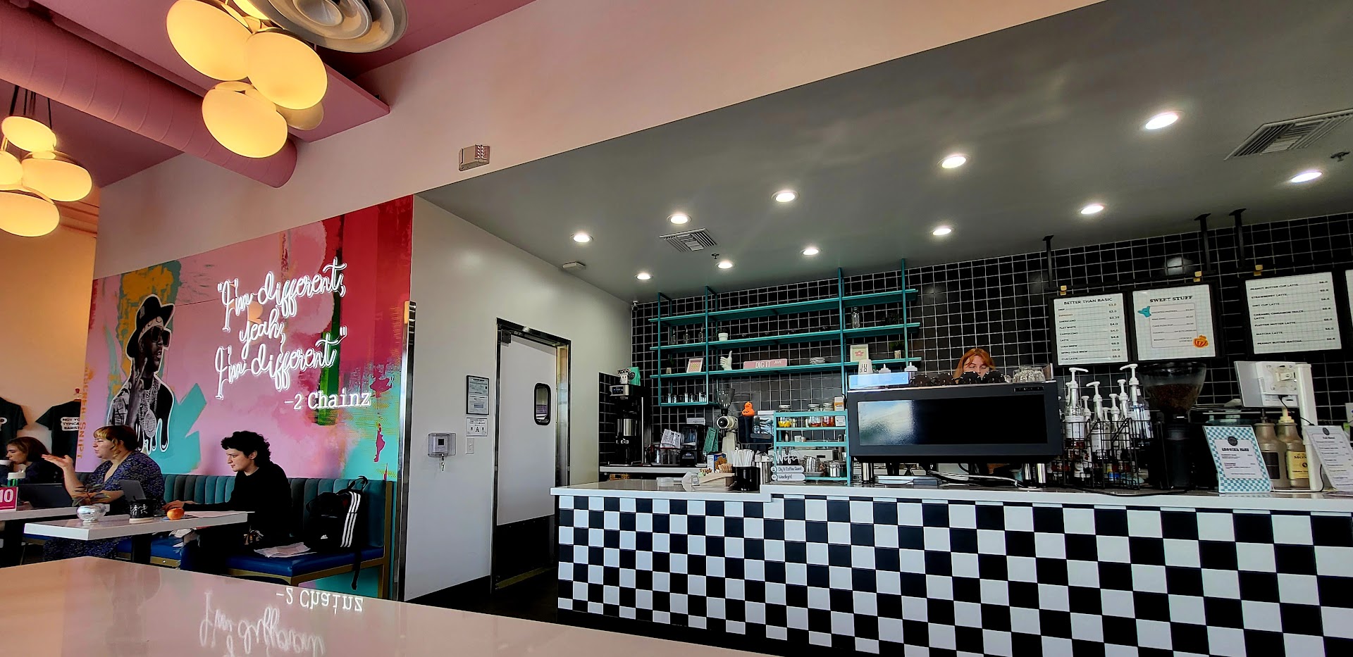 Read moreIt was Sunday, and we just both inhaled brunch at Esther's kitchen ( easy 3 min walk from Esther's). We decided to check this gem out! We absolutely loved the vibe in there. It was trendy, upbeat vibes. We were greeted enthusiastically by the cashier. His smile lit up the room, and he was so eager to attend to us. (Happy Birthday again, buddy! :)) He suggested both our drinks, and we were not disappointed at all! My friend ordered an iced tea with apple cider, and I ordered their pumpkin spice latte . Absolutely DEEEEE-LICIOUS!!! You can actually taste the pumpkin!! Some drinks at other places, you can barely taste the pumpkin flavor. But, here it was smooth , delicious, spiced, and full of LOVE! They also had cake pops, which was simply perfect! Not too sweet like others I've tried. In addition, to some other light sandwiches. It's not too far from Esther's kitchen, so this is going to be our new tradition , post Esther's kitchen delight !