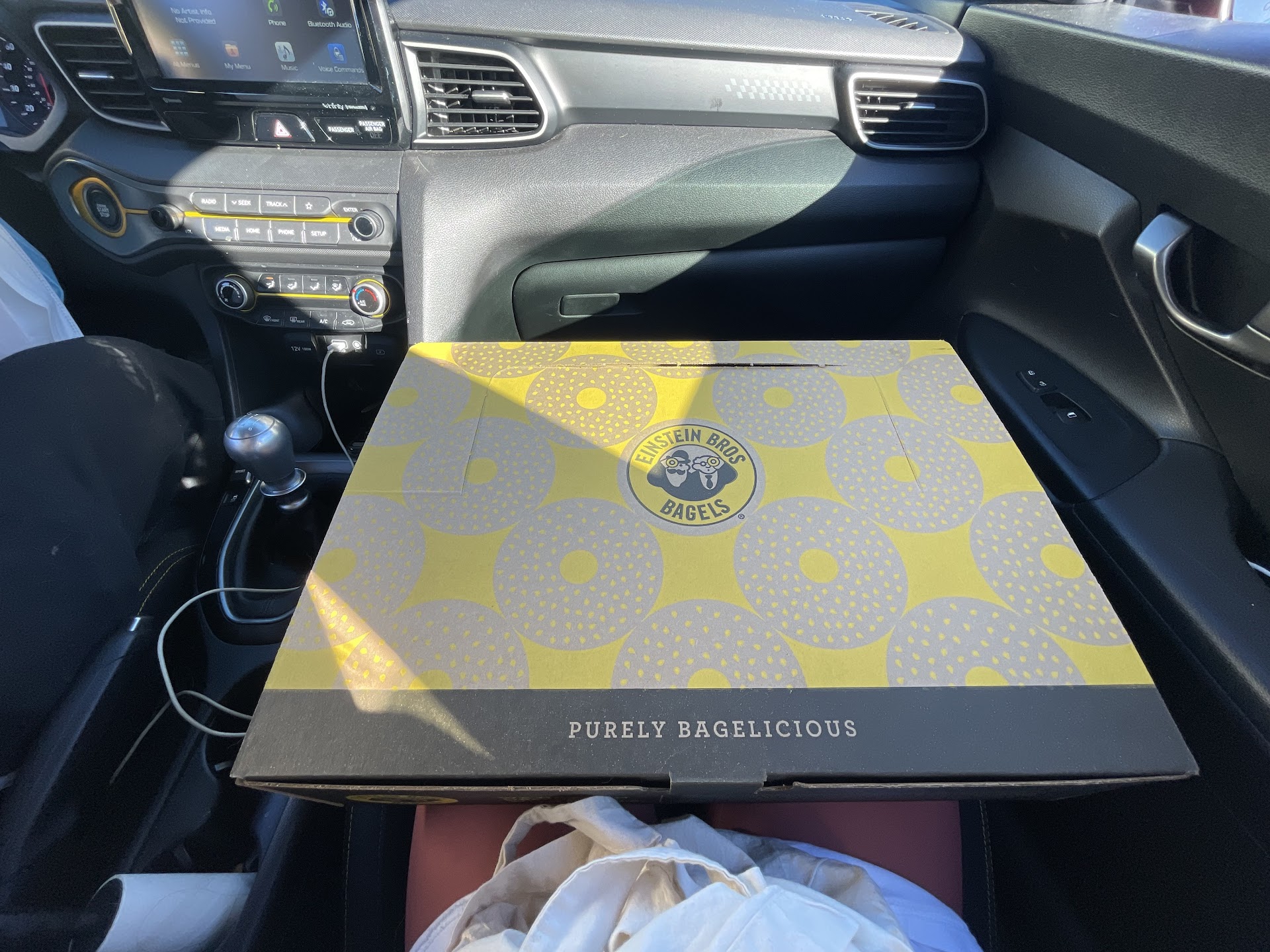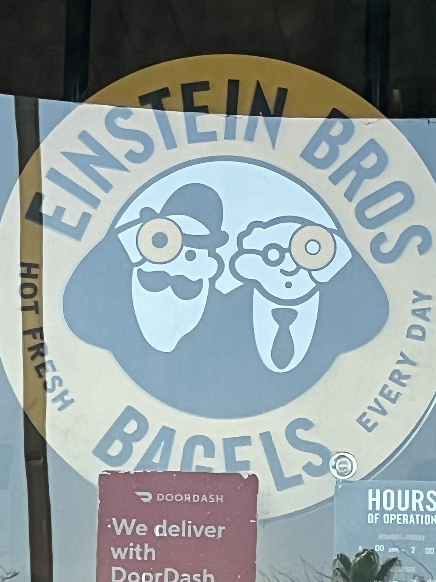 Read moreIm taking time out of my day to write this review because i am that upset with these people at this store. I Can't believe I had to wait 20 plus mins for 4 bagels which 2 of them had nothing on them just plain and there was no line when I ordered. I eat Einsteins all the time in Florida and I am visiting. I found them online and went to this store. They screwed my order up royally as well. I asked for an Asiago bagel toasted with no egg just bacon and cheese, one chocolate bagel toasted with cream cheese and two plain sesame seed bagels just toasted. I got the breakfast bagel with egg and no bacon, the 2 sesame bagels with plain cream cheese and the chocalate bagel with the wrong cream cheese. I checked my order in the car and just came back in to replace the 2 sesame seed bagels because they were for my wife that has a dairy allergy and they made me wait another 10 mins to just replace those 2 bagels. No apology, nothing. And when I told her that I have been waiting on my order since 9am and it's now 930 the lady said "I don't know anything about that I just make the bagels". Lovely customer svc skills, and trust me the manager or owner of this location better start looking into what these employees are doing because it makes the brand which i am fond...
