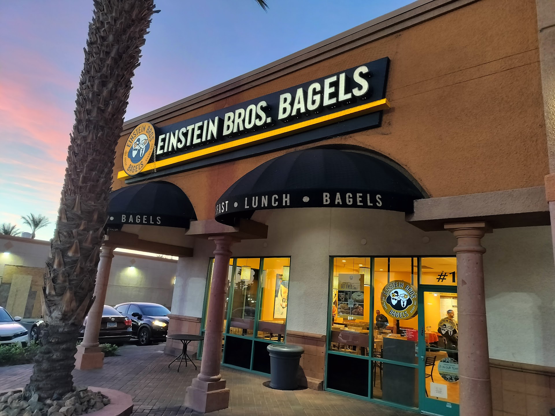 ACTUAL STAR RATING: 2.5 This Einstein Bros Bagels shop located on Lake Meade in Summerlin was the first one we frequented when we moved to Las Vegas almost ten years ago. At that time, it was a good reliable place for a decent New York-style onion bagel and schmear. The bagels were always well made and fresh, the coffee pretty good (but I prefer the coffee at Starbucks next door), and the service more than adequate. However, the service has recently become suspect, the bagels not cooked right, and the shop itself is dirty and unmaintained. I don't know what happened after all these years. Maybe it was bought by a new franchisee, possibly the manager isn't on the ball, perhaps the staff no longer cares, or perhaps German corporate food giant JAB Holdings has caused the decline. Whatever the reason, this store is now one of the worst remaining Einstein Bros Bagel stores in Las Vegas.