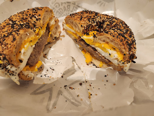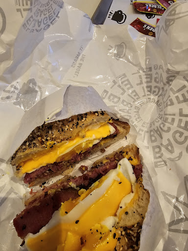 Read moreThe best bagel sandwich I've ever had! The only issue I encountered was that, the bagel sammy, even when cut in half, was a bit hard to eat with out the contents slipping out the back. I had the maple sausage, cheese and a fried egg, served an everything bagel. Which I might add was absolutely amazing. The flavor and aroma of the sesame seeds, toasted were superb. The only reason it wasn't 5 stars is because they didn't have the pastrami, yet it was on the menu. You can't go getting a guys hopes up, offering such an appealing sammy, then break his hungry heart, telling him, "we don't have the pastrami today." 😢 All yoke-ing aside, if you're in the Fountainebleau and want a good bagel or a good bagel sammy, check...