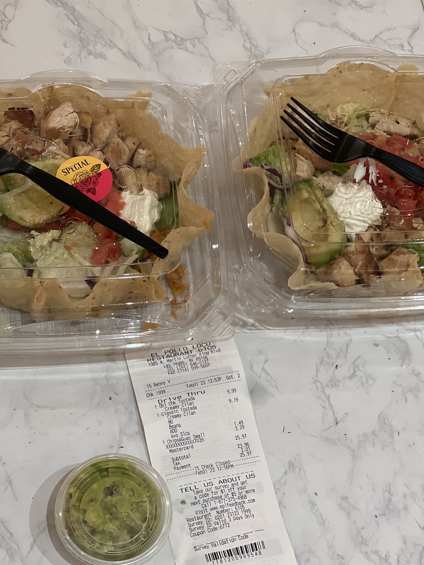 This is Ben's wife: I really like El Pollo Loco, I got there and get the same thing everyday. They make a delicious sauce called creamy cilantro dressing. I was extremely upset that they forgot my sauce at my last visit. I told my husband to check the bag and to make sure the sauce was in the bag. He decided to peek in the bag and not actually check, thinking you guys would do your job and of course we got home and the sauce was not in the bag. I could hardly finish my dinner and my husband and I got into a huge fight because he lied to me and said the sauce was in the bag when he didn't even check. Thankfully I had sour cream and other things I through together at home, otherwise we probably would still not be talking to each other. Do your job and put the sauce in the bag! Especially if the customer says they want it, several times! #madkaren. Posted below this photo is what WAS SUPPOSED TO BE IN THE...