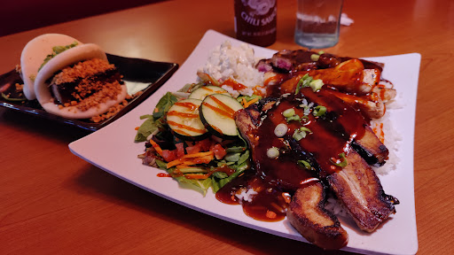 Fat Choy Combo Plate ($17): This plate comes with 3 types of meat - grilled chicken, kalbi, & slow roasted pork belly. The grilled chicken was pretty dry, even with the sauce drenched on top. This pork belly was drier than the one used in the bao but it was better than the chicken. The kalbi was the best of the 3 since it wasn't dry and had good flavors. The salad didn't have any dressing and some of the pieces were bad so I had to take those out. I put some Sriracha on top as my sauce or dunked it in the meat sauce. The white rice was also a bit dry so mix it well in the sauce. The macaroni salad was my favorite and...