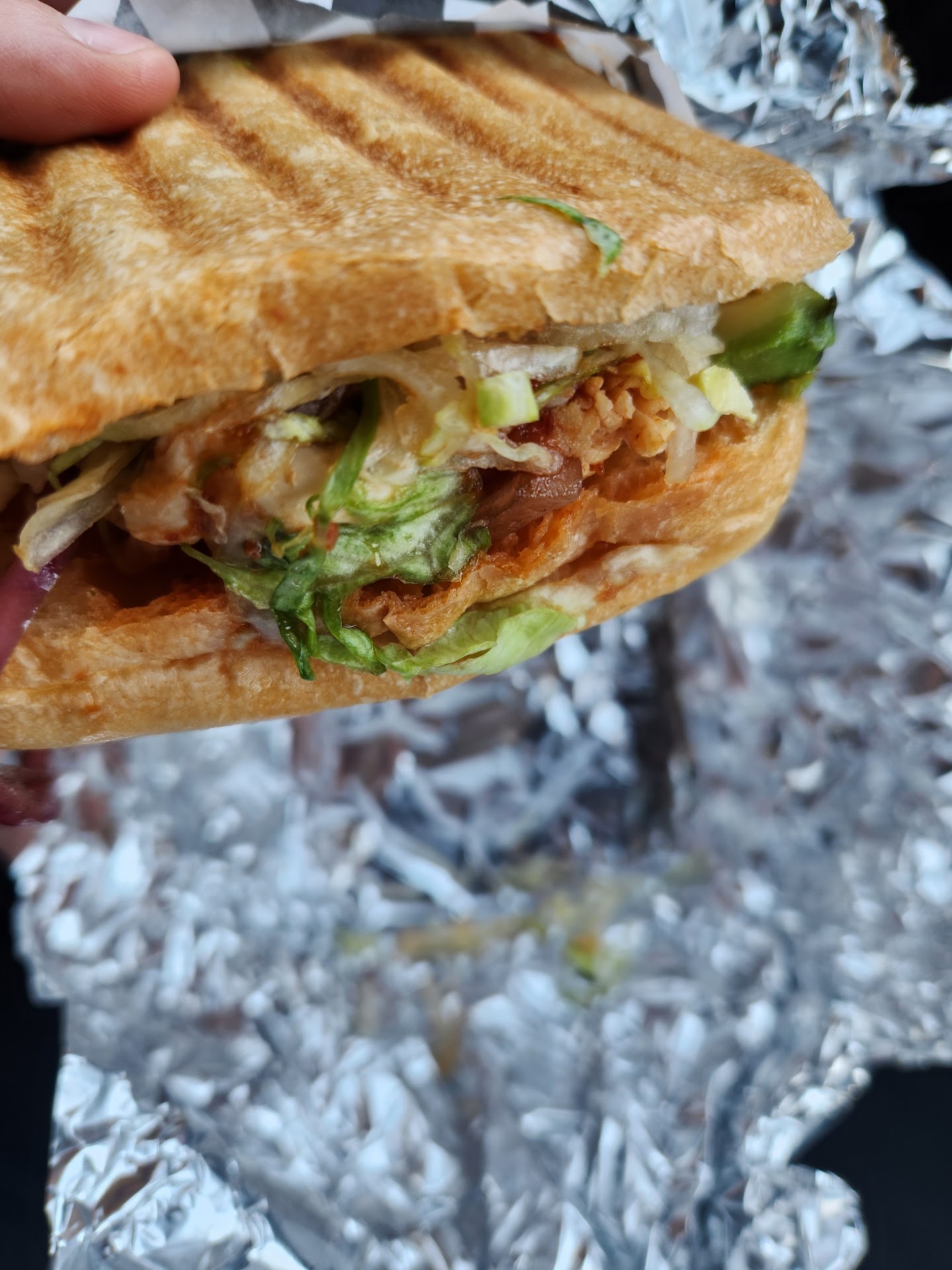 The steak panini was FULL of flavor, like a Mexican torta, panini style. The steak was well marinated and very thin. The bread had great texture and temperature. It had some chipotle sauces. Everything was right about the flavor and texture, BUT I wouldn't order it again, because I'm pretty sure (most likely) there was red dye and glutamate flavor enhancers (like MSG) in the marinade and blue and yellow dye in the pickled jalapeños, but I scarfed it down. So well prepared!!!