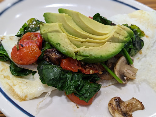 We ordered two coffees, orange juice, chicken and strawberry/banana pancakes; chicken fajita omelette w/pumpkin pancakes; and veggie egg white omelette w/original buttermilk pancakes and a side of bacon, ham, and hashbrowns. Everything tasted just as marvelous as we remembered and definitely satisfied our hunger and that "dose of nostalgia." We were a little bummed that after we were done with our coffee, we happened to look one table over and noticed that the restaurant had French Vanilla creamer as well. Had we had known that, we would've requested it in addition to the half-n-half we were only provided.