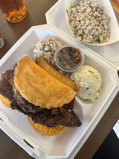 But the real star of the show was the food. I started with the empanadas, which were crispy and golden on the outside and packed with flavorful ricr and spices. The red rice was the perfect accompaniment, fluffy and savory with a hint of sweetness. And then there was the barbecue...oh, the barbecue! The pulled pork was melt-in-your-mouth tender, and the ribs were fall-off-the-bone delicious. The smoky flavor was incredible, and the sauce was just the right amount of tangy and sweet.