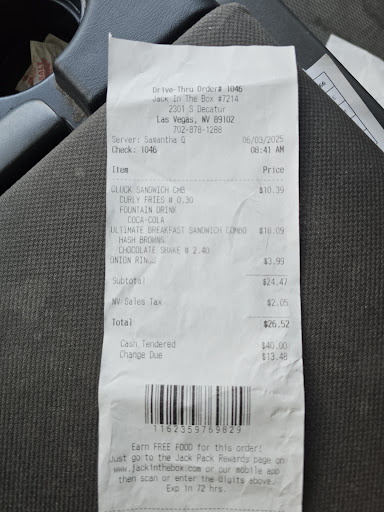 Read moreYesterday 06/03/2025 at 8:41 am, I ordered on the drive thru and when I had to pay, I paid $40 and gave the lady two $20 bill and and the order was $26.52 total but I got 8 dollars change instead. I didn't check the change, and I left. I checked when I got home at 8 pm, and I realized they didn't give me the full change, which is $13.48. I came a day after, around 12:20 p.m., and the lady in charge told me she couldn't do anything about it. She called her boss and told her the same thing to her. The name of the girl is Samantha Q, as it says on the receipt. The check number is 1046. I asked the lady in charge today, 06/04/2025 to check the cameras but she said "I'm not gonna be able to see how much she gave me" so, this situation is frustrated because I have to work the whole day and I wasn't able to come back the same day. The name of the lady who I talked to is Yahaira. They should change the personnel who's getting the orders at this location. They are not doing a good job because either they're not trained or they don't care...