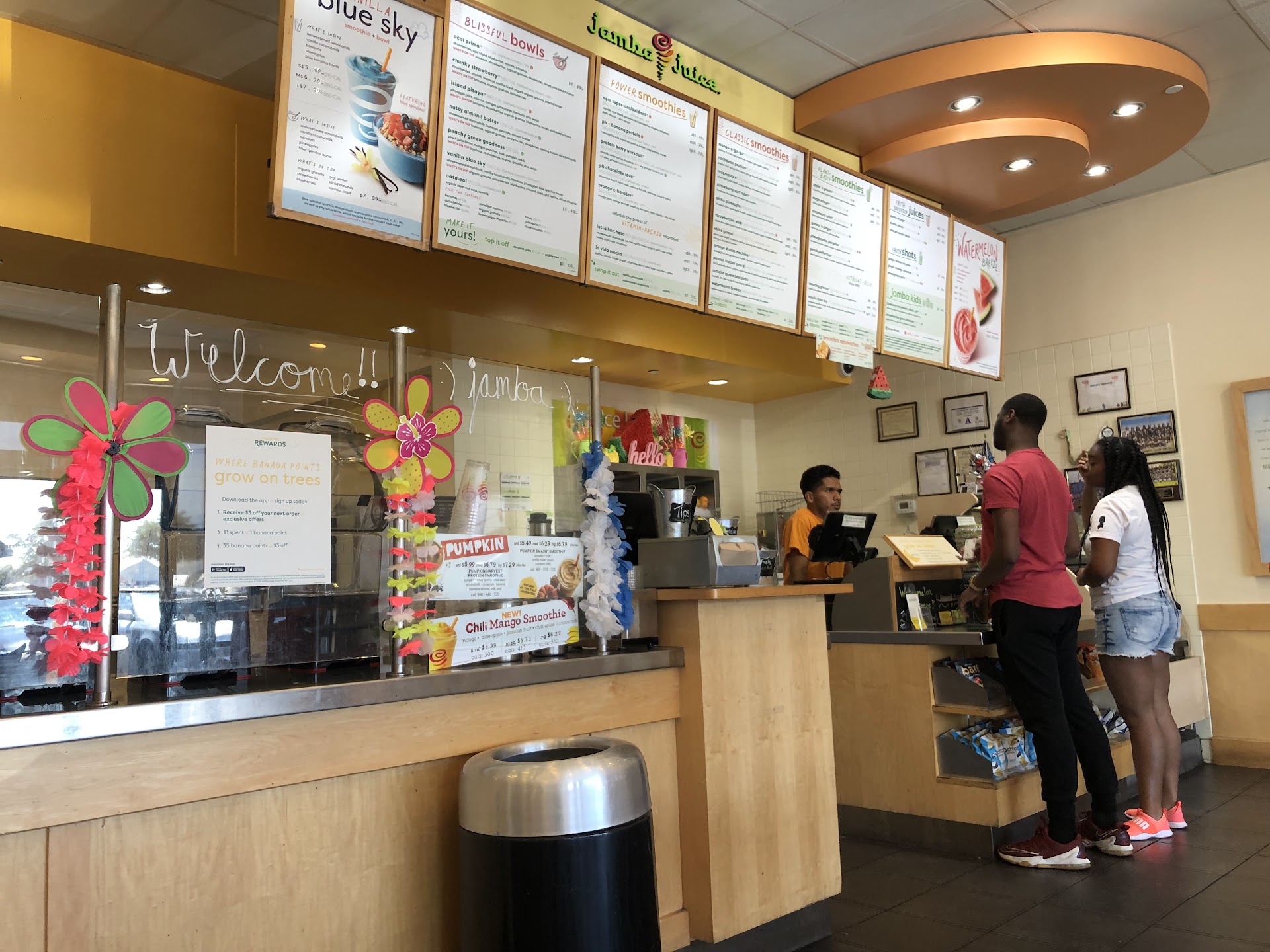 Read moreMy mother and I just walked into this location abd we haven't been to a jamba juice in awhile. Like a year or so. Tropical smoothie is our spot now but decied to give them a shot. So i don't see the one I wanted anywhere on the menu so I ask the female that is working the register if they still have Banana Berry. And how much is the large one!? She says yes As this other male employee comes up and says something to her and i think touched her and they just start laughing and completely ignore us. And went we went to walk out and told them how rude they are they looked at us like we where the ones in the wrong. If u can make ur work place fun then for sure do that but not like that not in front of customers!!! Idk who the manager right now is but which of the three (if thats all whos working right now ) they are doing a horrible job. And I never ever do reviews for anywhere ever. Needlessto say we left and went to tropical smoothie and got much better service for a...