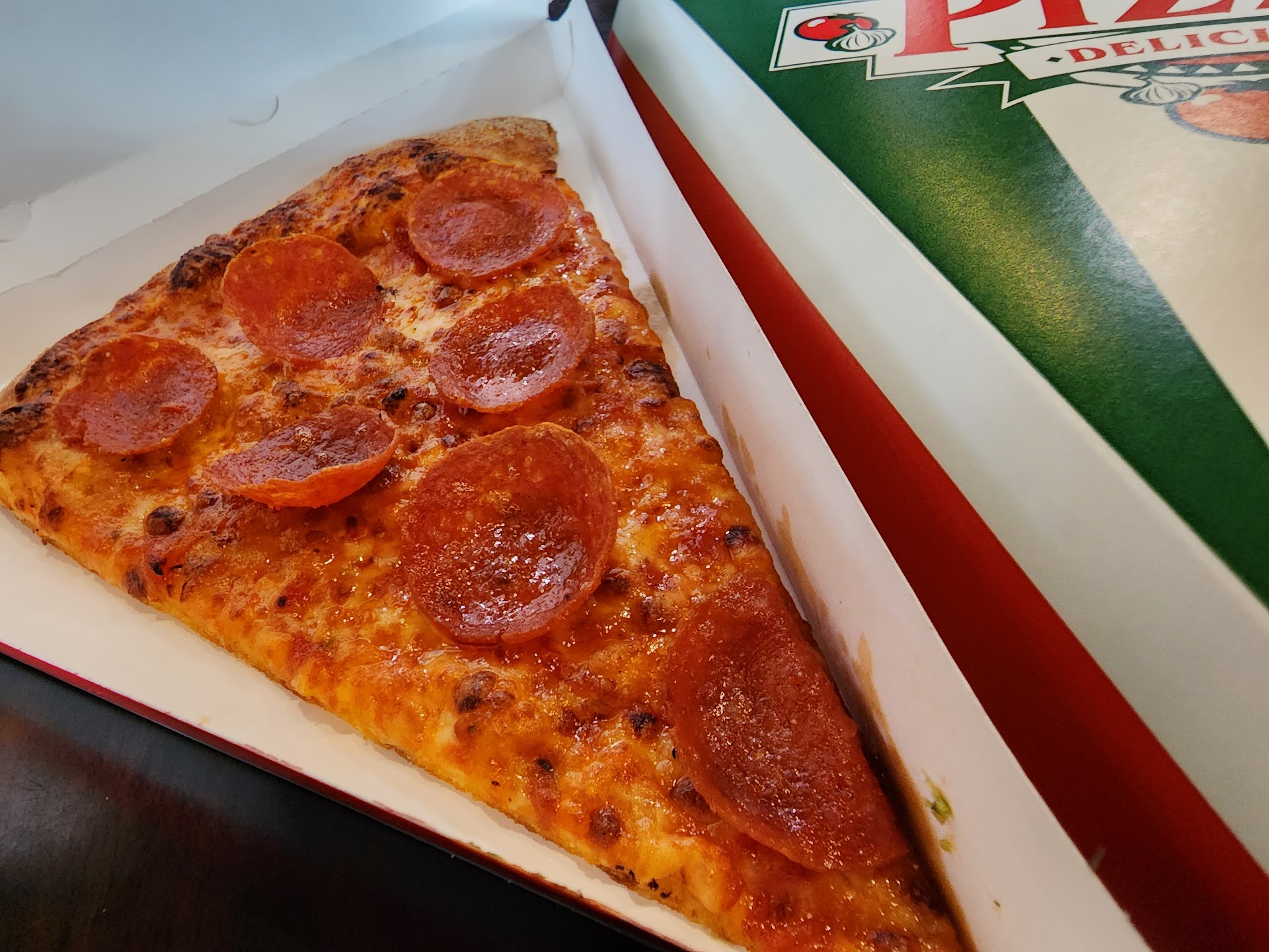 The crust wasn't too bad and might be the best part of the slices as the pepperonis seemed like they were added as an afterthought. Especially frustrating is how the pep weren't actually being held to the pizza by the cheese and a couple fell off and onto the floor mid bite.
