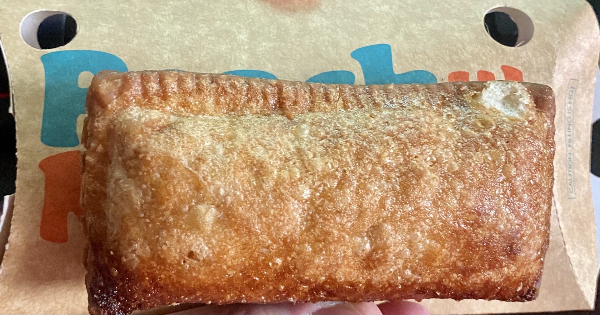 Lastly was the peach mango pie which Iâve seen other people complain about at this location too. As a regular order for me, Iâm used to these filling out most of the width of the sleeve and almost the entire length so that when you open the sleeve you see the pie filling it up. Instead this pie only took up around 2/3 of the space of the sleeve and looked very small inside. It had also cooled entirely when I ate it and the filling seemed very runny and gloopy.