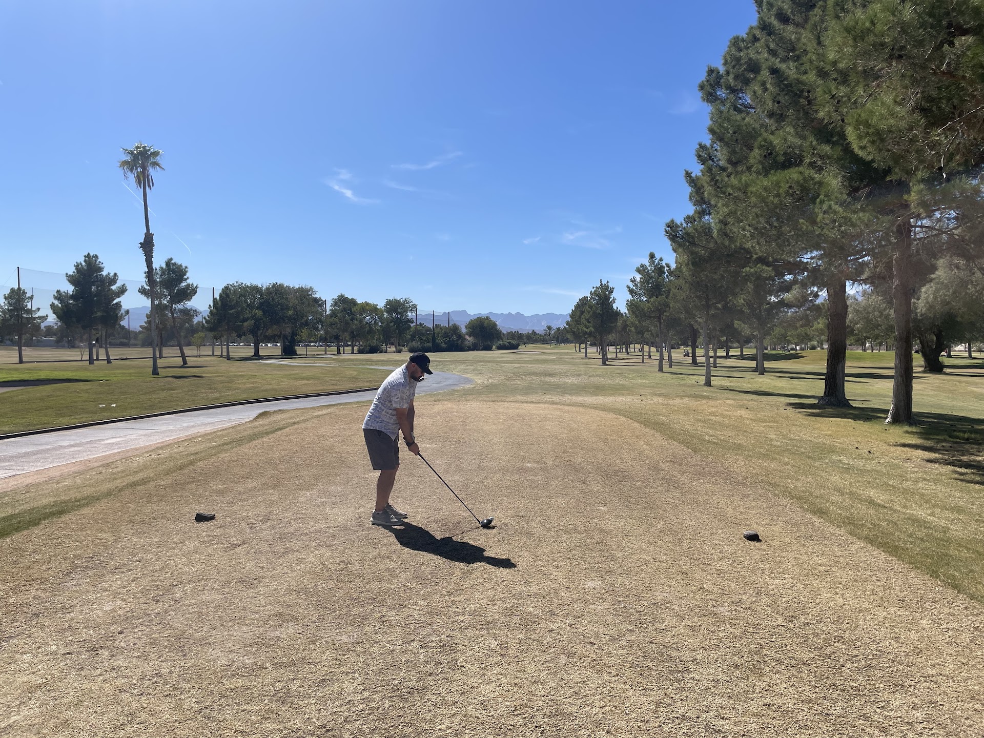 I'm not from NV so perhaps this is some kind of seasonal water rights issue I'm not aware of as prior pics seem to indicate the course was green at some point. But if that's the case, the price should be reflected. I know Vegas golf is expensive but $109 to play a dirt track is unfair. We played a much cheaper course the previous day and it was night and day conditions-wise.