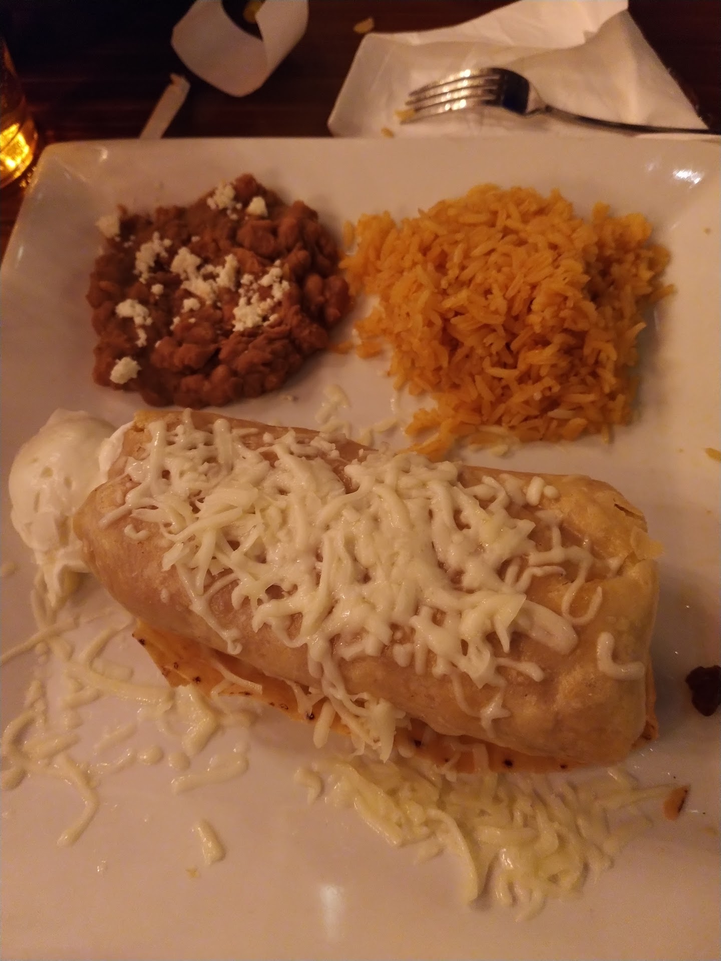 Read moreWent in for dinner tonight with the family and our whirlwind of a granddaughter. We have been wanting to eat here for awhile now and I have to say that it was definitely worth the wait!. Our evening started off with complimentary chips & salsa and I have to give a nice compliment about the salsa, it's got the perfect amount of spice and heat. The other is a refried bean dip and it's got a great traditional taste of pork fat in it, yes folks most refried beans are made with (real pork fat or lard).. Anyway. When it comes to dinner, I ordered a ground beef chimichanga with red sauce. My wife ordered a shredded chicken chimichanga and both come with refried beans and rice on the side! My mother in law ordered the cheese enchiladas with a red sauce and refried beans on the side and then the sampling of each other's meals began. The cheese enchiladas in that red sauce is so good that it truly gives you an authentic taste of Mexico from beginning to end. The Beef and the chicken chimichanga's had the perfect amount of seasoned meat wrapped up in a deep fried tortilla and you can either have it topped with sauce or not, I recommend having it covered and customizing the chimichanga. What I mean by customizing is, you can basically build your own burrito and/or chimichanga with everything you love being stuffed inside, deep fried and then covered in a delicious red sauce.. Oh my goodness I want another one right now!! Okay, back to the food 🥑. The refried beans and rice were both really good but the only downside to that was the portions. We all just wished the portions of the refried beans and rice were a bit more, but other than that dinner...