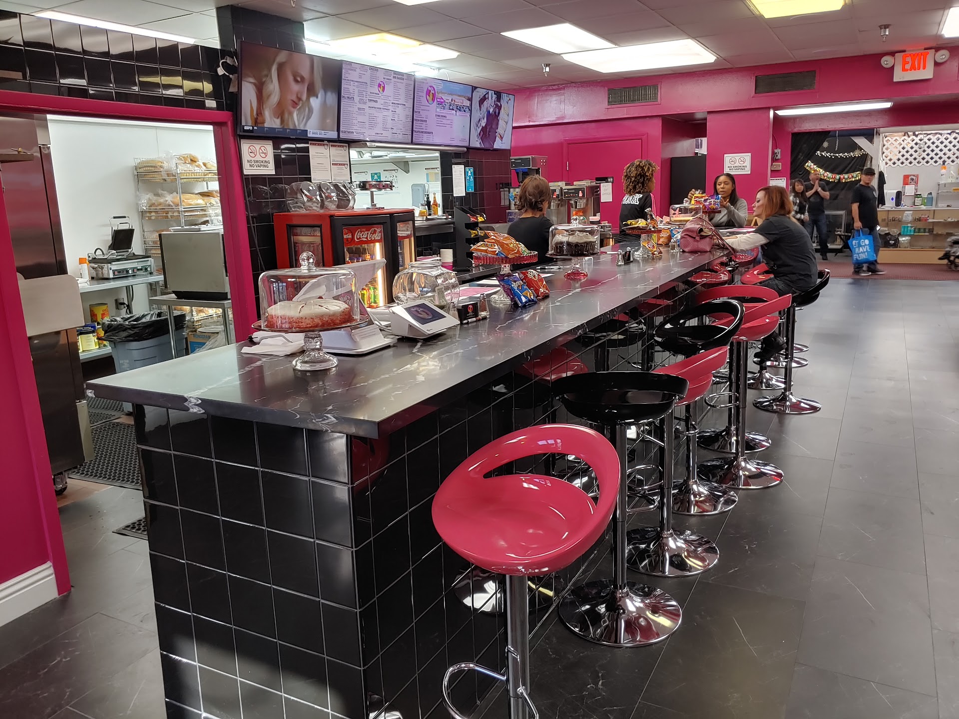The shop is located inside the Fantastic Swap meet, the exit door is locked, you’ll have to walk inside and pay the $1 fee. The shop is right around the corner. The arcade/ diner was empty but the pickup line had two guests before attending to me. My sandwiches were ready in perfect timing. I loved the efficient checkout and proximity to the swap meet entrance/exit doors.