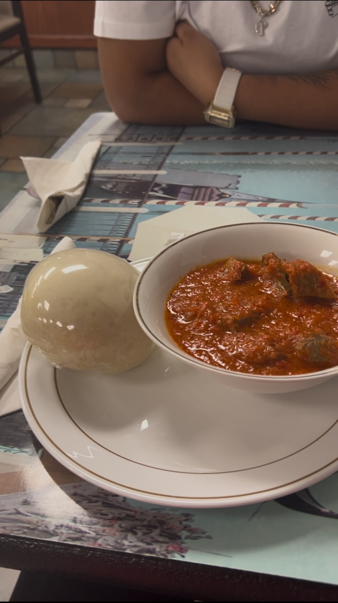 Food was a 5 out of 5. I've been wanting to try Fufu for a few months now and I must say.. I wasn't disappointed. The chicken Stew with Fufu was delicious ! The flavour was on point, meat was tender, and Fufu was well done. Knowing how to eat Fufu is key to a good experience, so YouTube it if you have to.