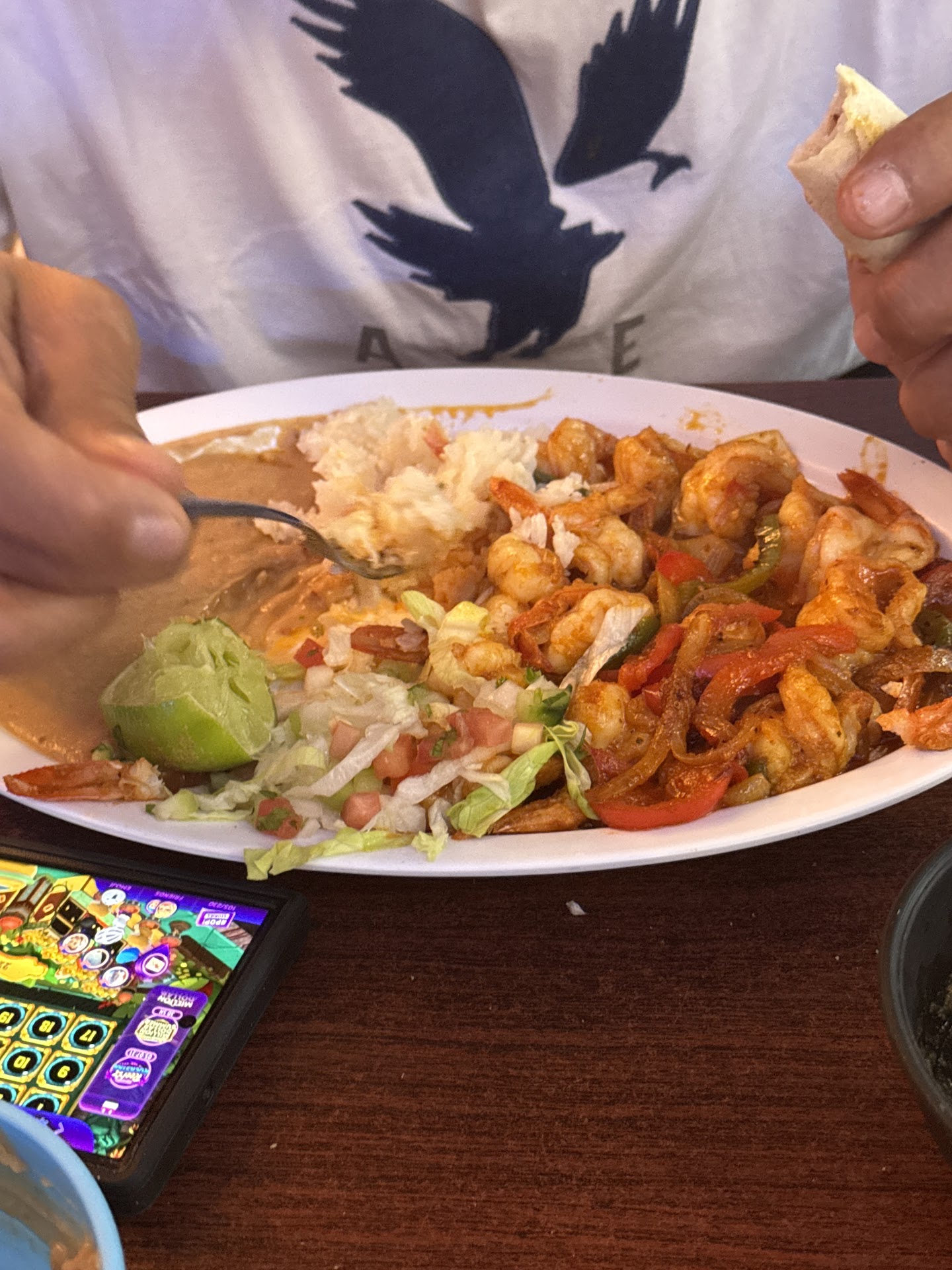 PLEASE READ!!!! I came here with my dad, husband, and 2 daughters. We walked in, nobody said anything, and there were only 2 other families there. We say down, the lady came over about 10 minutes later and brought us chips, salsa, and and beans and said sheâll be back to take our order. After another 15 minutes she came back and got our order and brought our drinks. Food was very good. But if you go here please make sure that you check your check very well before you pay. I didnât realized until after we got home and my husband told me how much he paid that I was like âwait a minuteâ and asked if he looked at the check. He said she didnât give it to him and just told him the total (We asked for the check at the table and she never brought it, we waited a little while to see if she would bring it and she didnât so my husband went up to pay) idk what else she charge us for but our total, with taxes and everything, should have been no me than $105. She charged him $145. Idk if she put the rest down as her tip or what (we left a cash tip on the table) but that really pissed me off. I want to go back and say something about it. Also charged us $5 more to use debit...