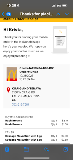 Read moreTo me customer service is everything and 1 mishandled situation can really change my mind about going to a place even if I really like the food. So without going into the long story...lol McDonald's needs to start placing the date and time of how long their strawberry cream pies have been sitting in the warmer. I frequently go there and purchase the pie along with a drink but every third or fourth pie I purchase has been very dry a couple of them have been unedible. I called them and they were not interested in what I had to say other than I'm very busy and I have orders to get out. I was advised they would give me a replacement just stop by, so I went there the next day and was told that they would not give me a replacement unless I have my receipt, irregardless of the phone call that I had previously with the supervisor Liz. So always keep your receipt so if you have any issues there's nothing they can say. And McDonalds tellers need to stop asking "do you want your receipt?" just give it to the customer so you don't have...
