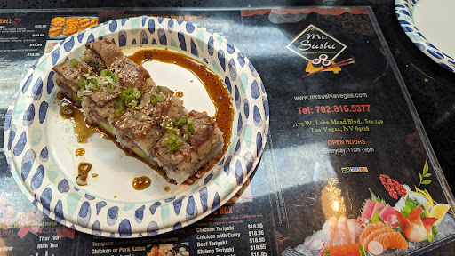 Read moreWe just left this restaurant. We are a family of 5 with young children and are wanting to try our local sushi places nearby. This is our 1st stop. Overall the food was pretty good. Nothing we disliked. We got the spicy spider roll, Philly roll, California roll, mango tango roll, zizzling love roll, sweet potato roll, shrimp tempura roll, miso soup, and teriyaki chicken chow mein. The downs were that they serve the food on disposable plates, they don't have a soda machine (only canned soda, snapple juices, and a few other options), and Thai tea. The service lacked just a bit. We had to flag someone down twice, other than that everyone was friendly. Would we eat there again? Yes, but probably not dine-in. We'd prefer take-out and/or a quick lunch without the kids lol. The prices are also decent compared to many other places. Most specialty rolls range...